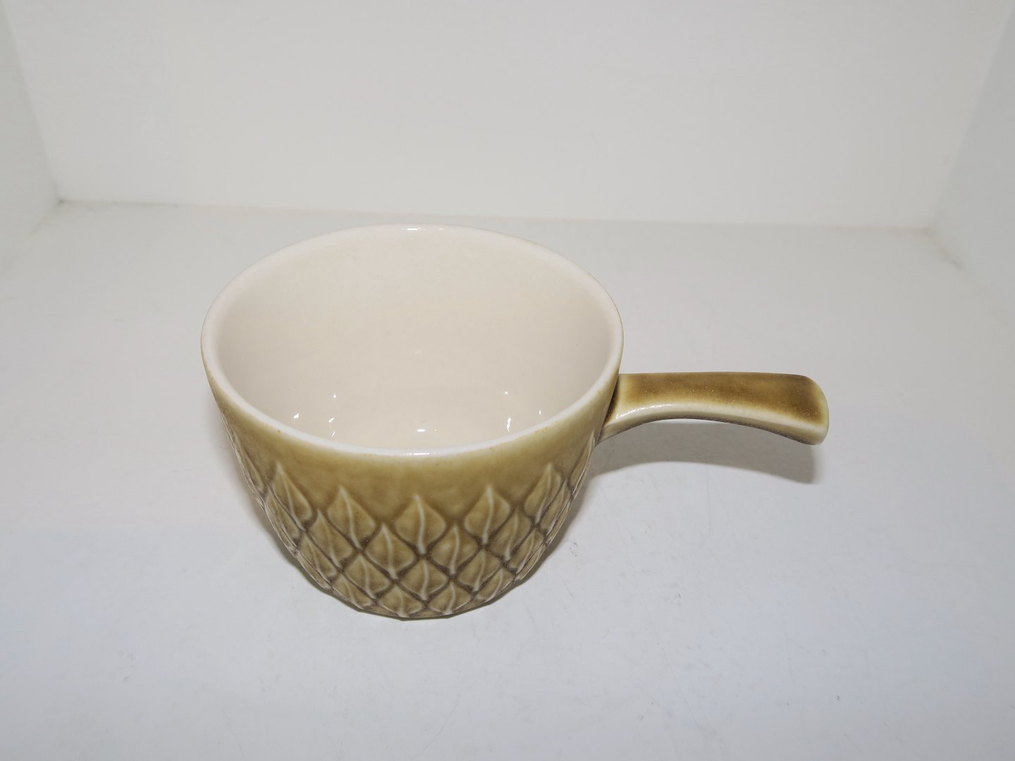 Bing & Grøndahl/Nissen/Kronjyden, Relief stentøj, lille kasserolle. Designet af Jens Harald Quistgaard. Længde 12,5 cm., diameter 8,1 cm. Perfekt stand.