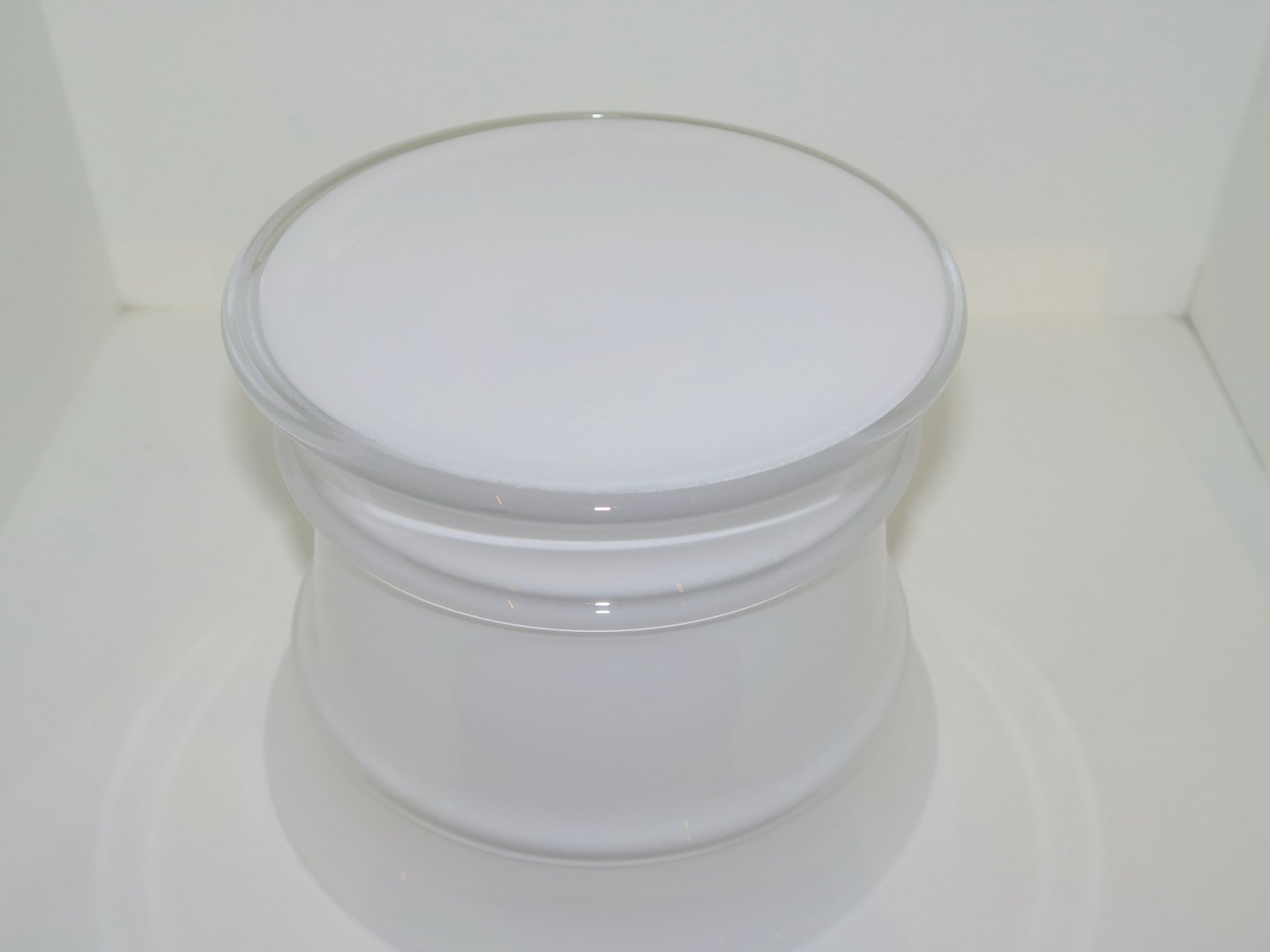Holmegaard, MB urtepotteskjuler - stor model. Hvidt opalglas. Designet af Michael Bang i 1981. Diameter 17,5 cm., højde 13,1 cm. Perfekt stand.