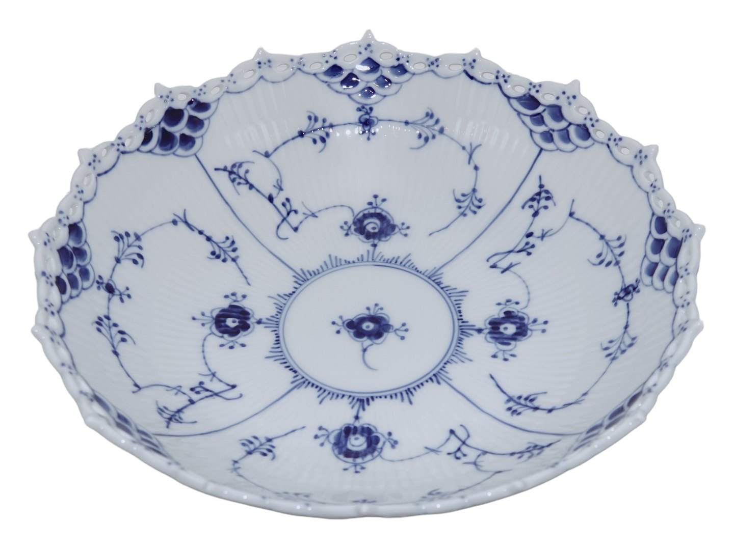 Royal Copenhagen Musselmalet Helblonde, rund skål. Fabriksmærket viser, at denne er produceret i mellem 1969 og 1974. Dekorationsnummer 1/1018. 1. sortering. Diameter 20,5 cm. Perfekt stand uden fejl.