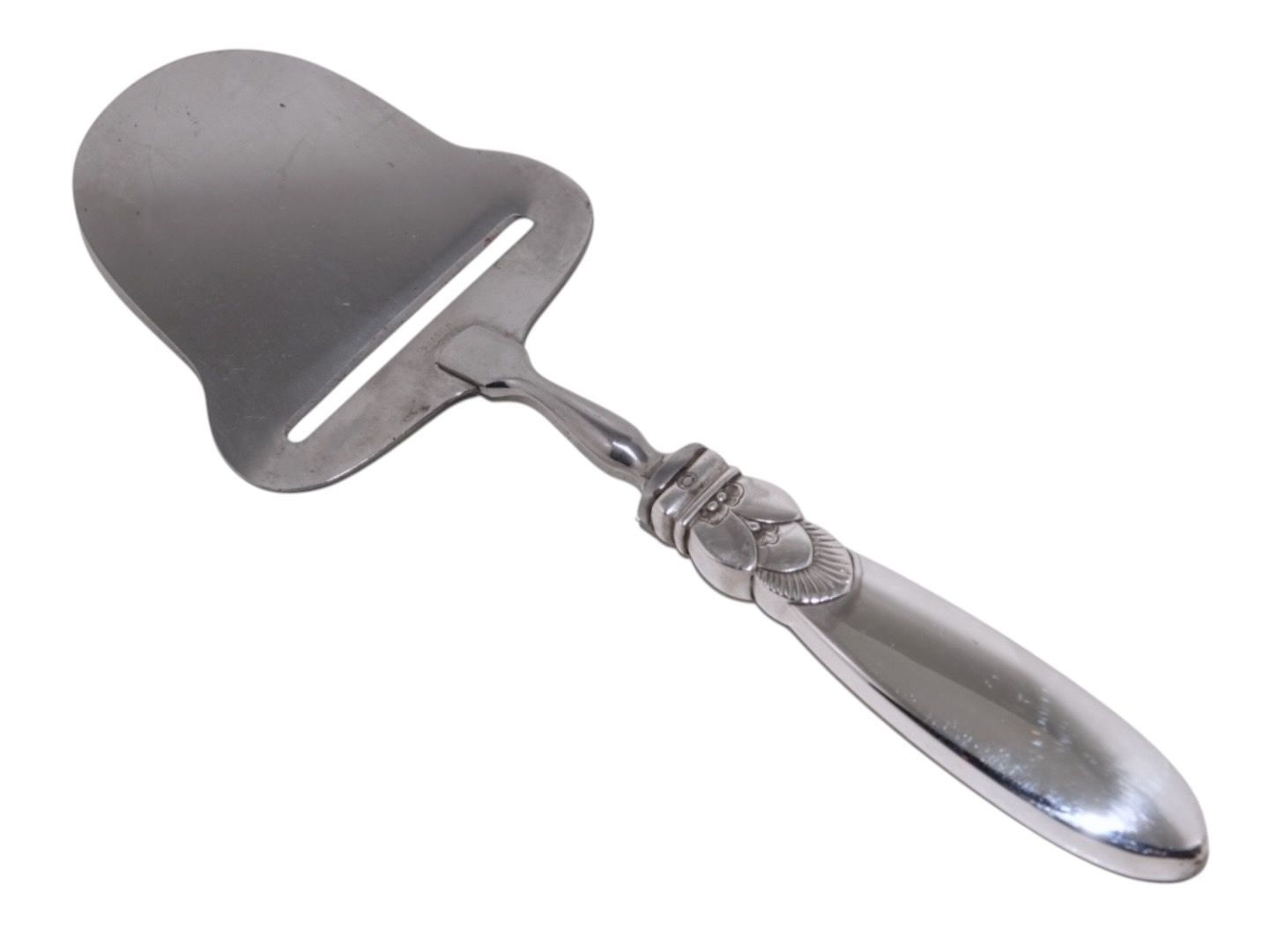 Georg Jensen Kaktus sterling sølv og rustfrit stål, osteskærer. Længde 20,9 cm. Der er mærker på bagsiden af stålet, se foto, ellers fin og velholdt stand uden indgraveringer.