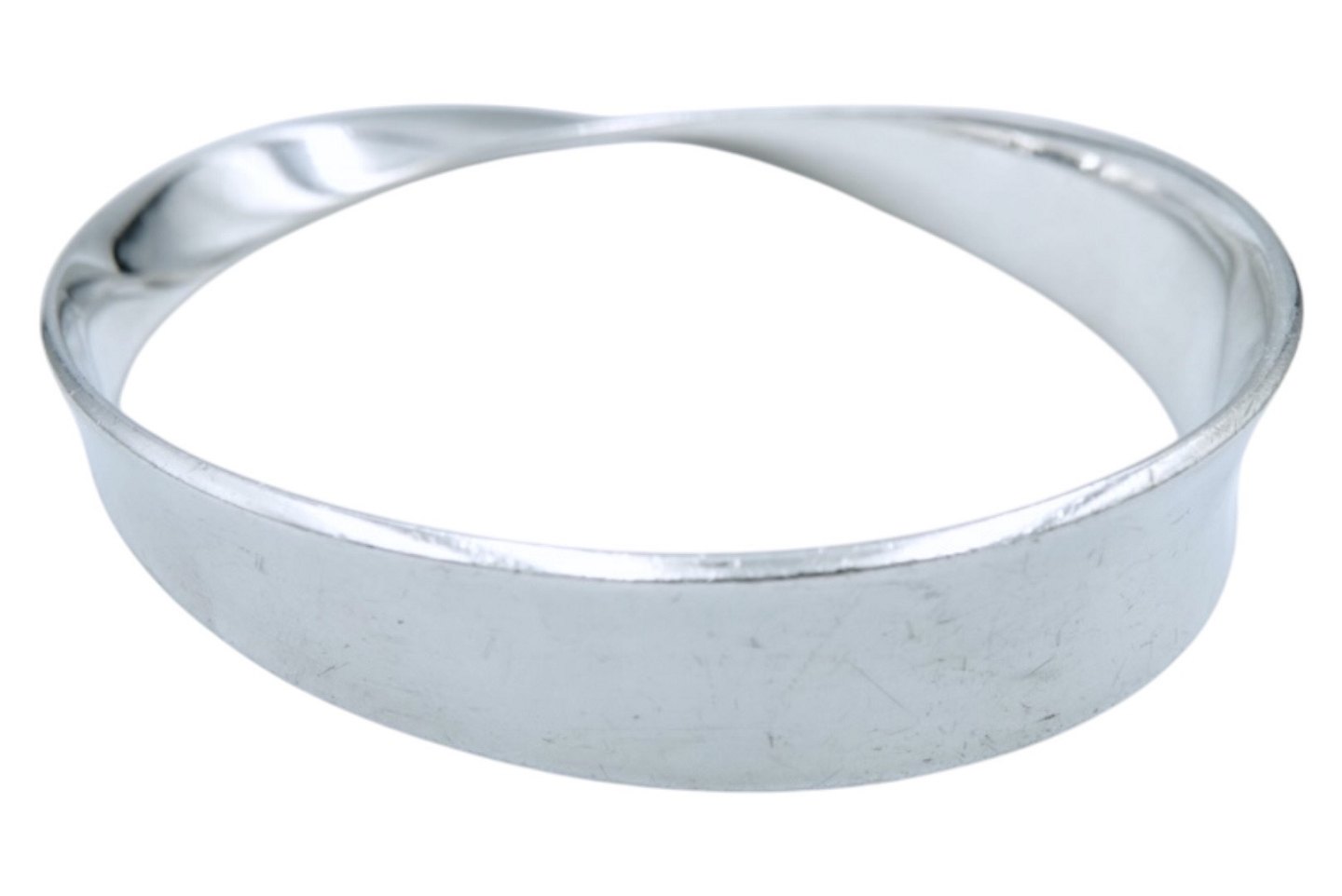 Georg Jensen sterlingsølv, Möbius armring i flot kraftig kvalitet. Dessinnummer 206. Designet af Vivianna Torun Bülow-Hübe. Indvendig diameter 7,5 cm., max bredde 2,0 cm. Velholdt stand.