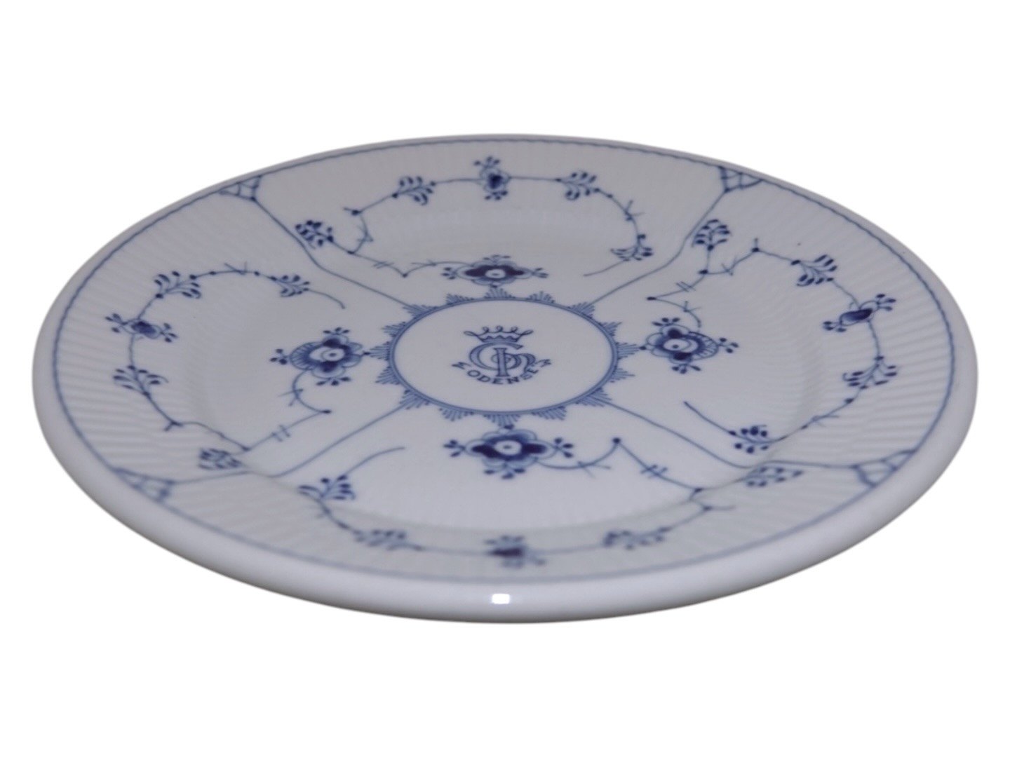 Bing & Grøndahl Blåmalet Hotelporcelæn (Musselmalet), sildetallerken med logo fra Odense. Dekorationsnummer 2005. 1. sortering. Diameter 19,2 cm. Perfekt stand uden fejl.