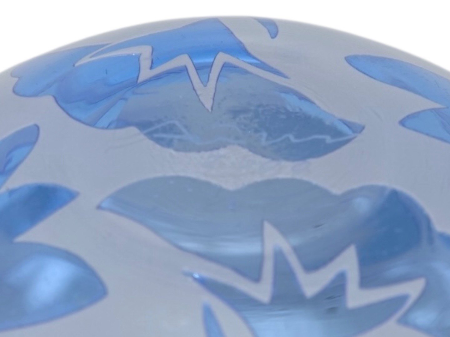 Holmegaard, skål med matteret glas og lyseblå blomster.