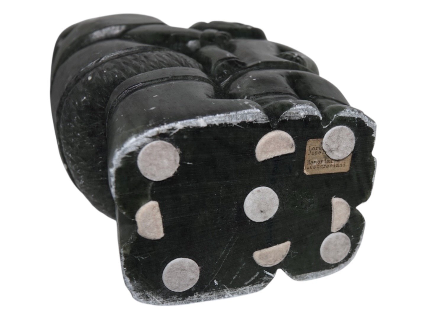 Mærkat i bunden med teksten "Lorentz Josefsen Nanortalik Vestgrønland 01.78"