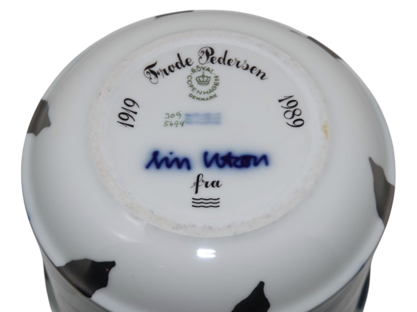 Dekorationsnummer 309/5694 med dedikation med hilsen fra Royal Copenhagen.