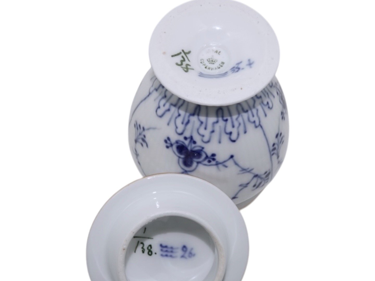 Royal Copenhagen Blue Fluted Plain with gold trim, rare lidded mustard jar.