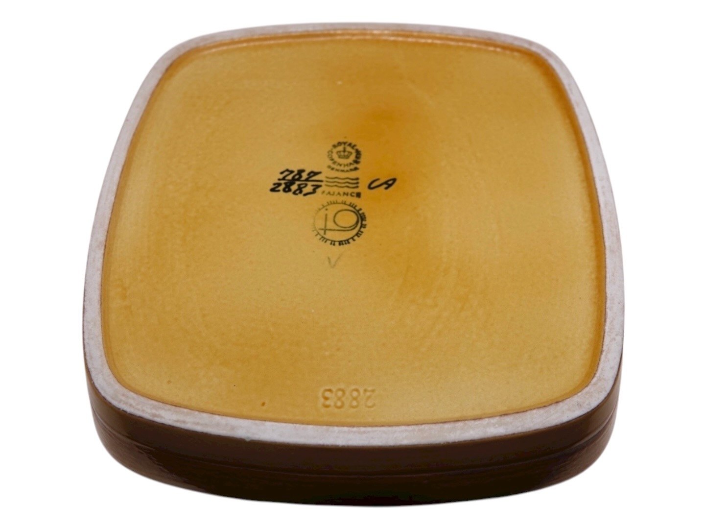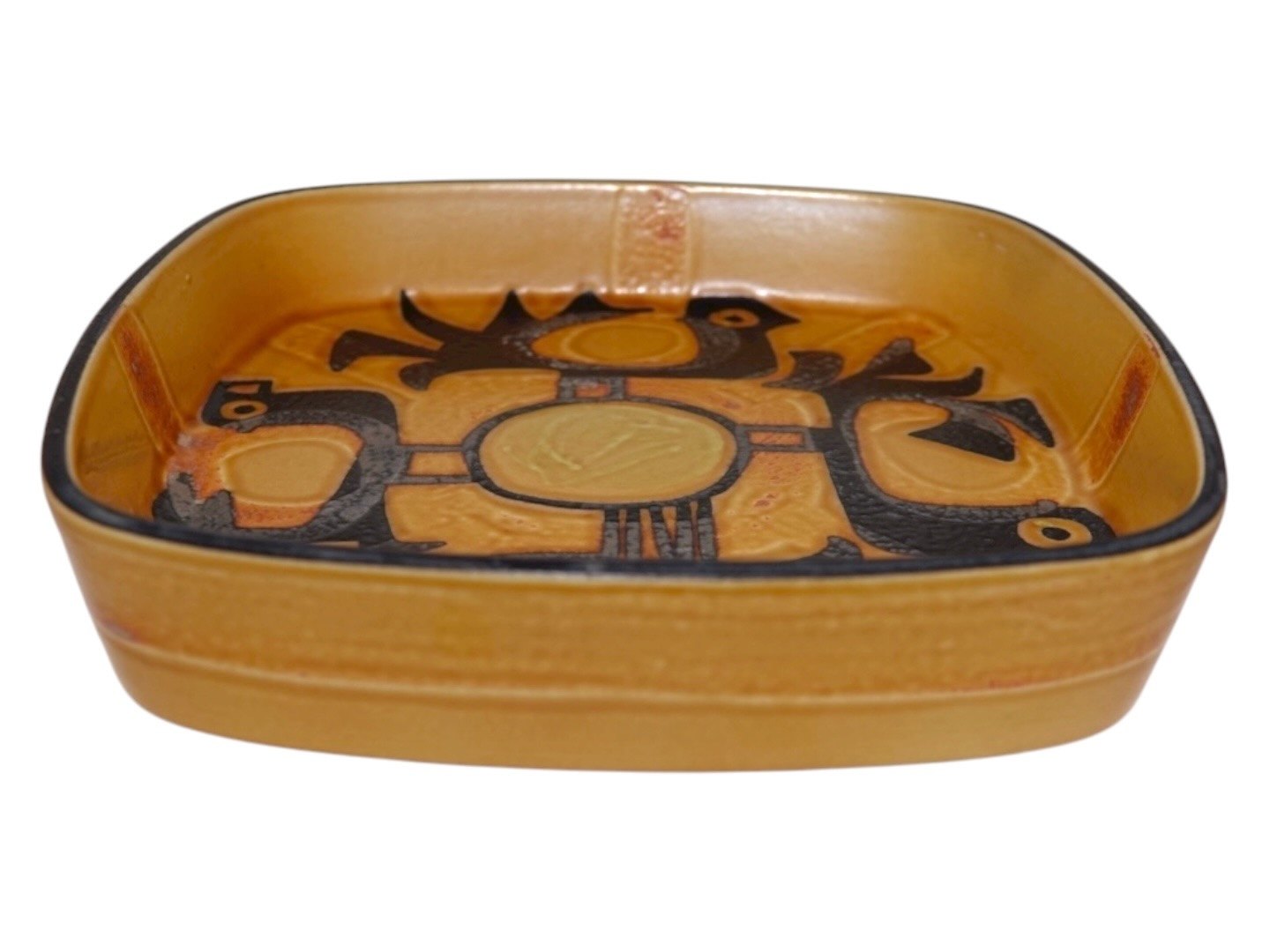 Royal Copenhagen Baca gul firkantet skål dekoreret med fugle.