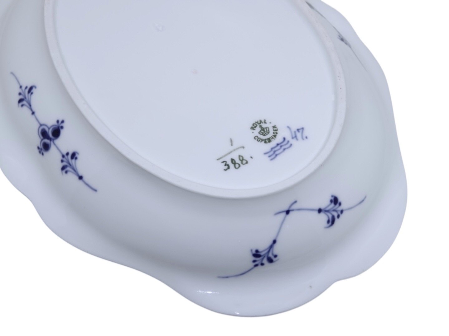 Royal Copenhagen Musselmalet Riflet, sjælden brødbakke. Fabriksmærket viser, at denne er fra mellem 1898 og 1923. Dekorationsnummer 1/388. 3. sortering. Måler 31,0 x 24,5 cm. Perfekt stand uden fejl.
