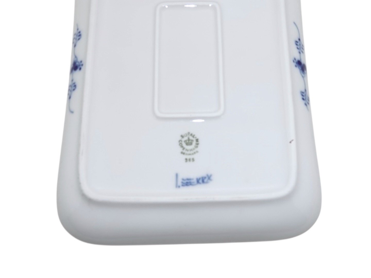 Royal Copenhagen Musselmalet Riflet, bakke. Dekorationsnummer 365. 3. sortering. Længde 22,0 cm. Perfekt stand uden fejl.