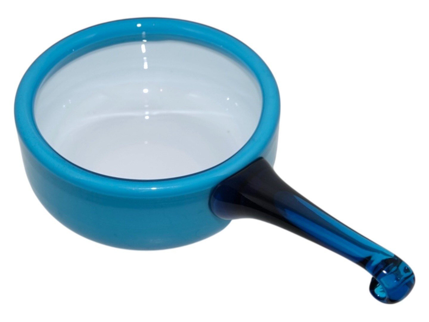 Holmegaard Palet, lille blå sildeskål stadig med rest af original Holmegaard etikette.