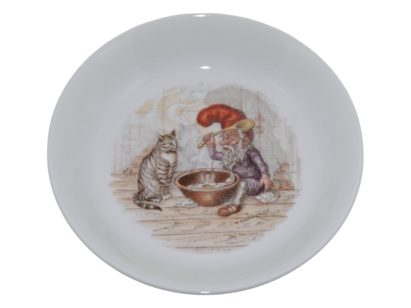 Royal Copenhagen julestel, asiet med julenisse og kat. 1. sortering. Diameter 13,7 cm. Perfekt stand uden fejl.