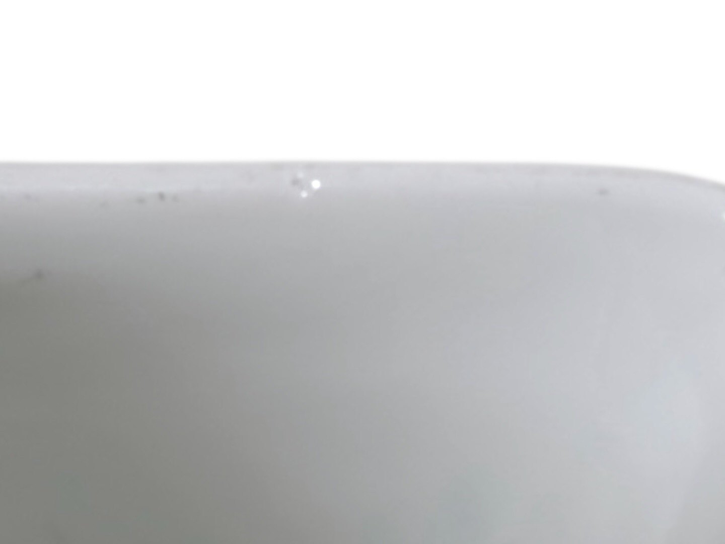 Der er en lille revne i glasuren samt et lille bitte kantskår på topkanten, se fotos.