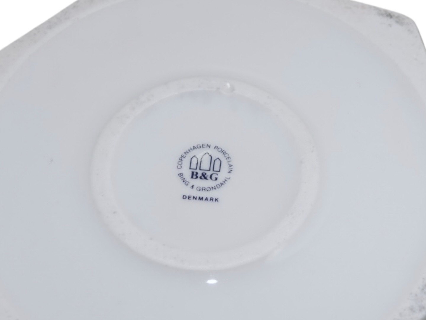 Bing & Grøndahl, sekskantet skål med låg dekoreret med nisser. Af fabriksmærket kan det udledes, at denne er produceret mellem 1970 og 1983. 2. sortering. Måler 12,2 x 12,2 cm., højde 5,5 cm. Perfekt stand uden fejl.