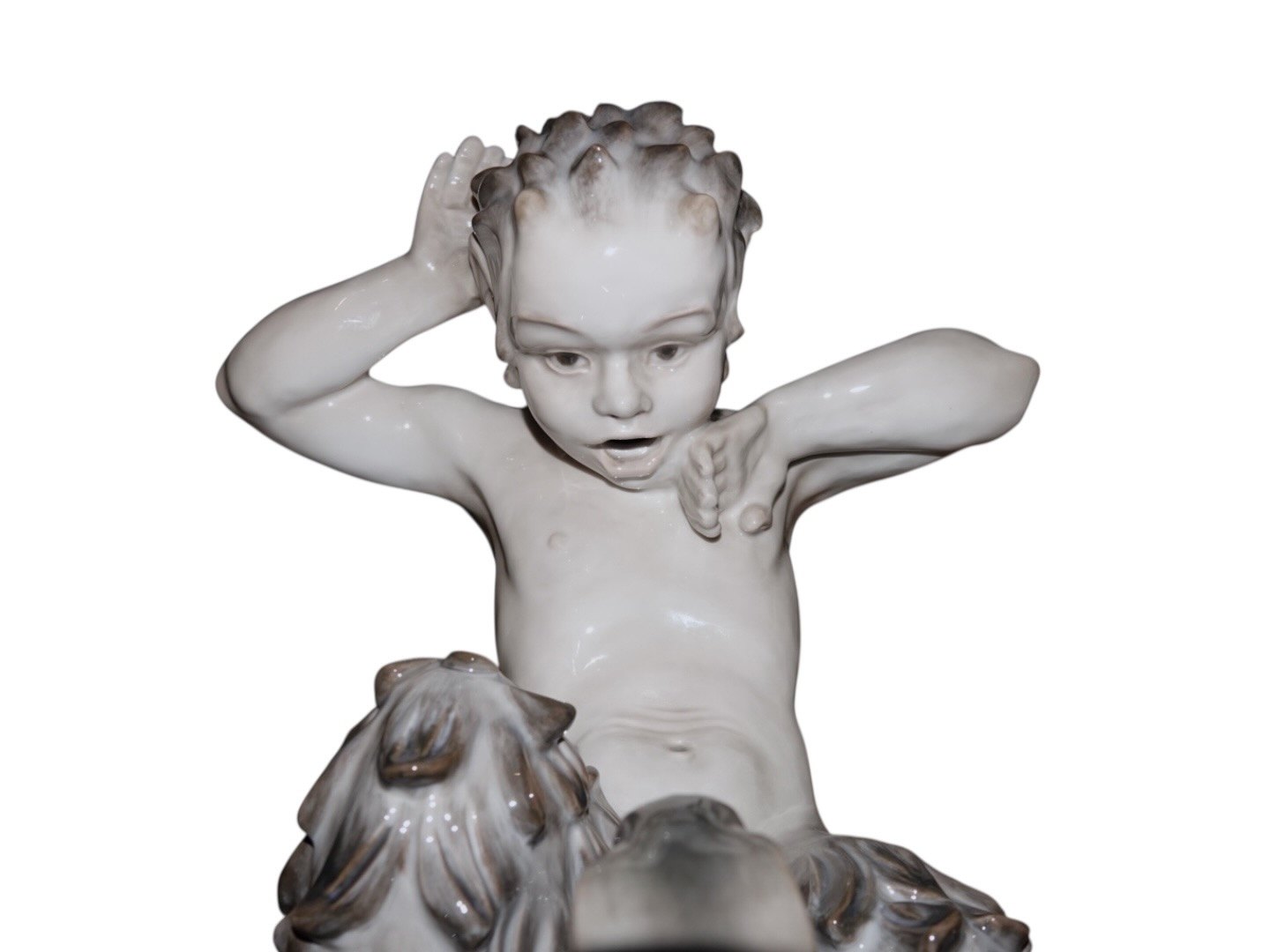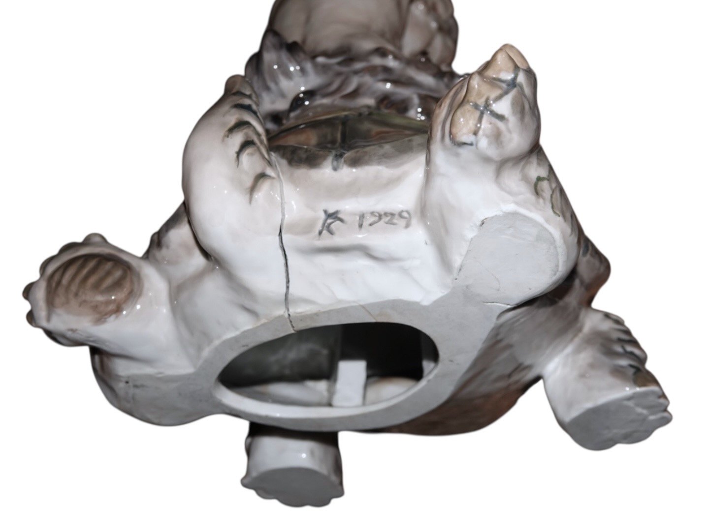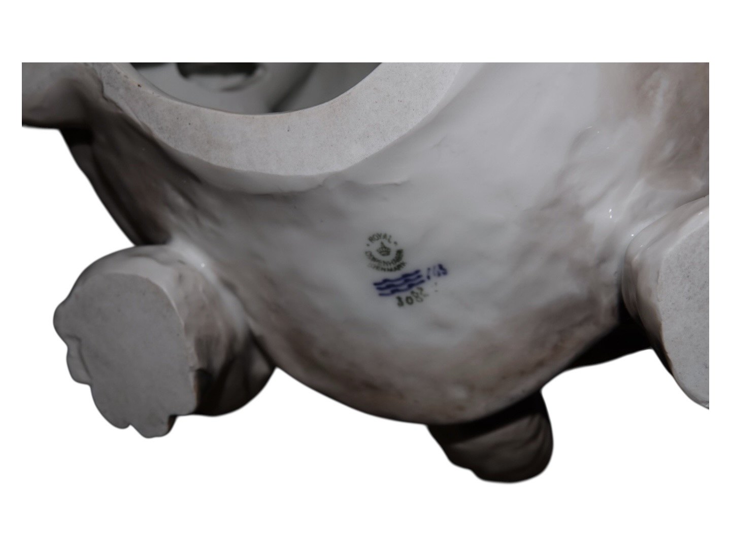 På trods af at figuren er første sortering, så har den en stor brændingsfejl på bagsiden (se næstsidste billede) . På det tidspunkt var det yderst vanskeligt for fabrikken at brænde de helt store værker uden at de fik brændingsfejl, så for at undgå at kassere alle, lod de dem blive solgt - selv med store brændingsfejl.