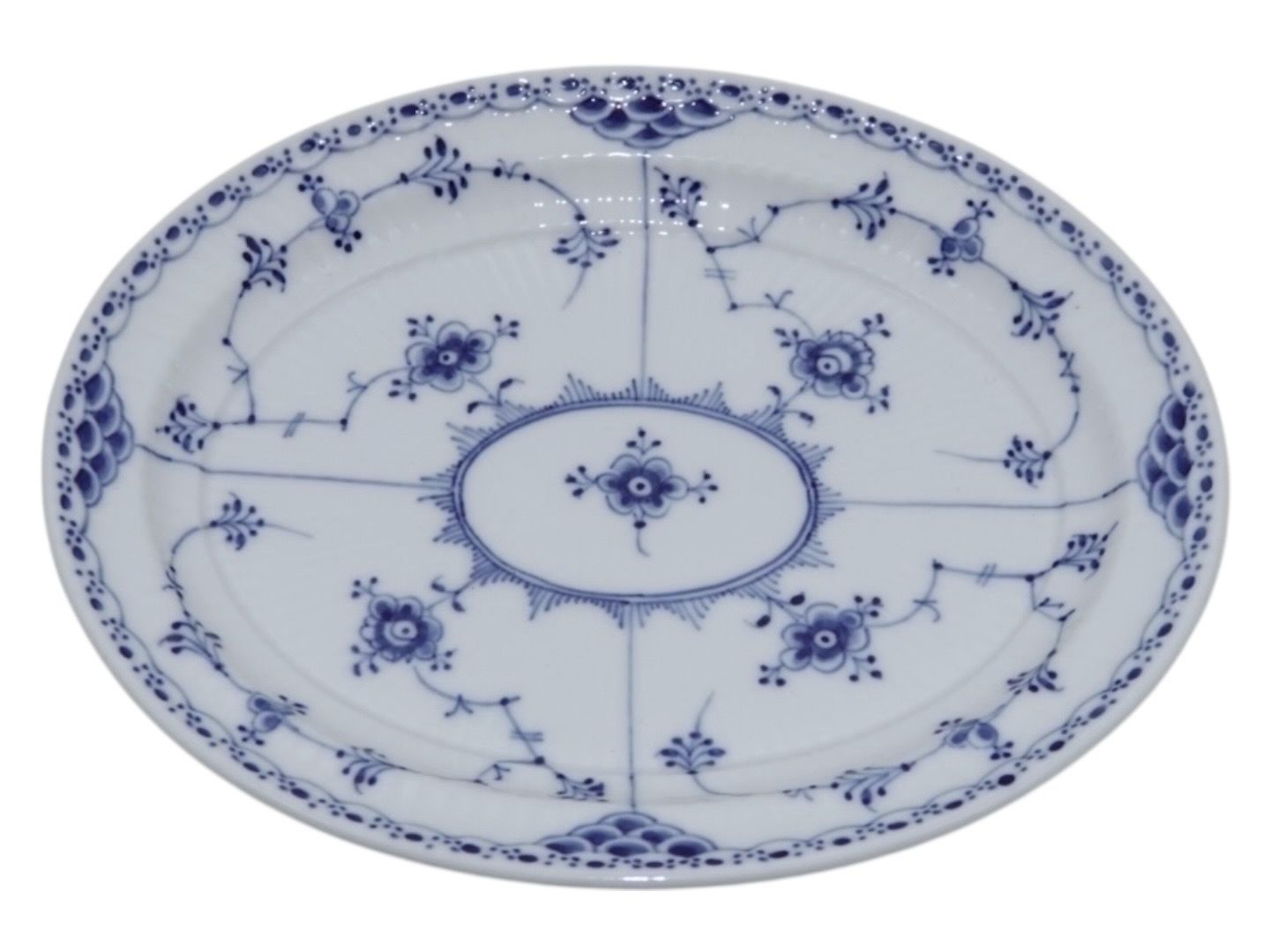 Royal Copenhagen Musselmalet Halvblonde, sættefad. Af fabriksmærket kan det udledes, at denne er produceret i 1938. Dekorationsnummer 1/751. 2. sortering. Længde 21,0 cm. Perfekt stand uden fejl.