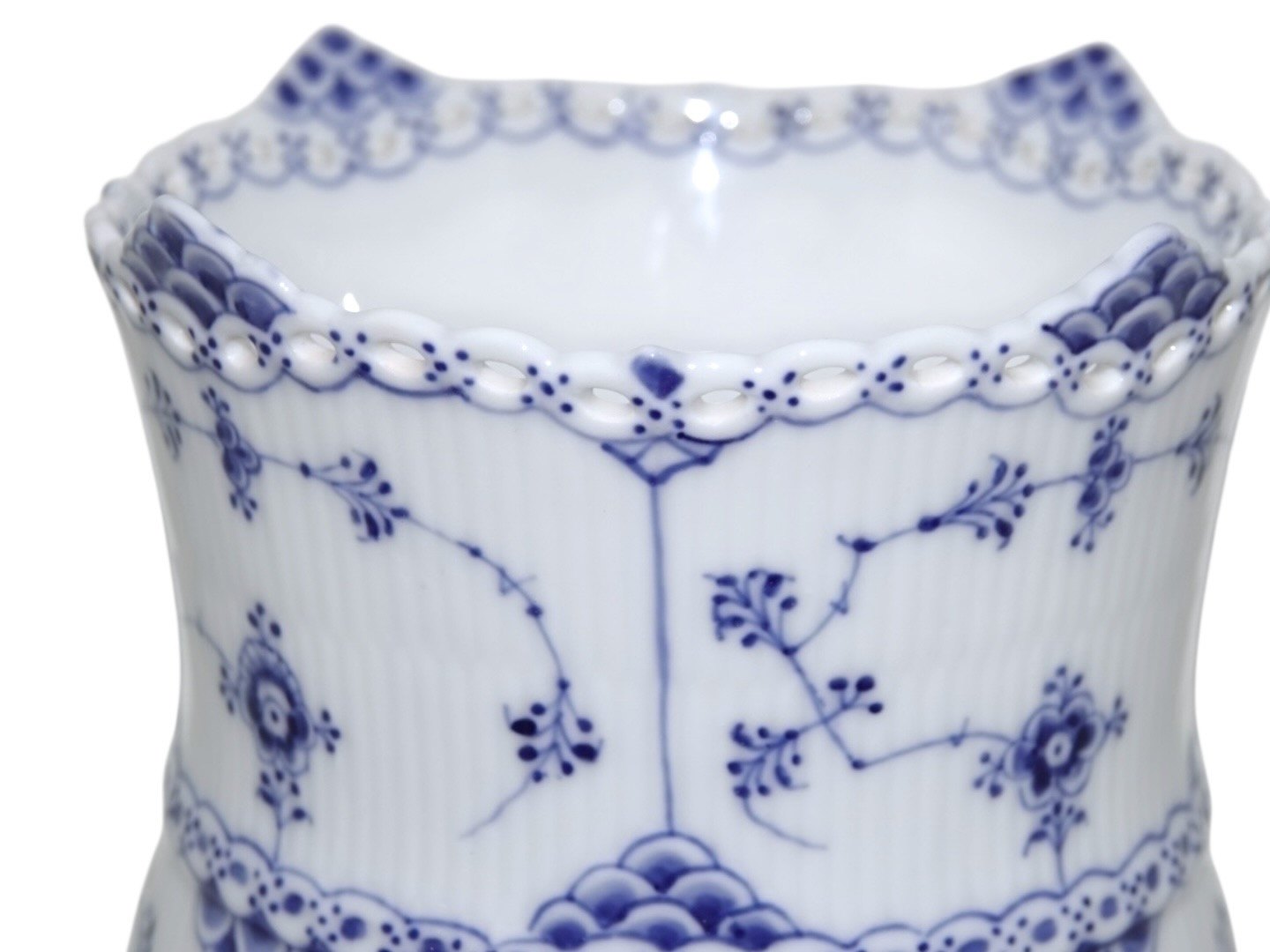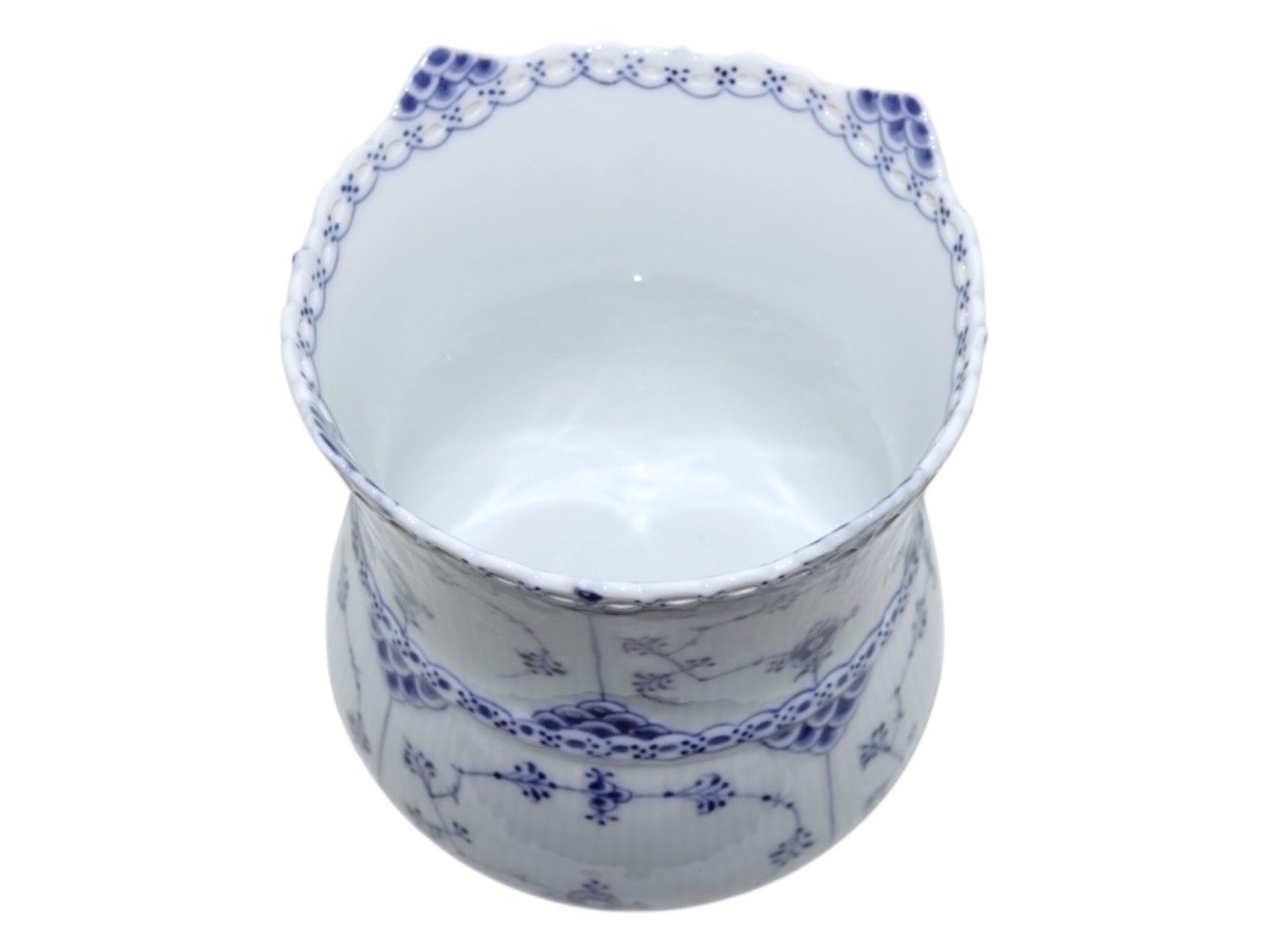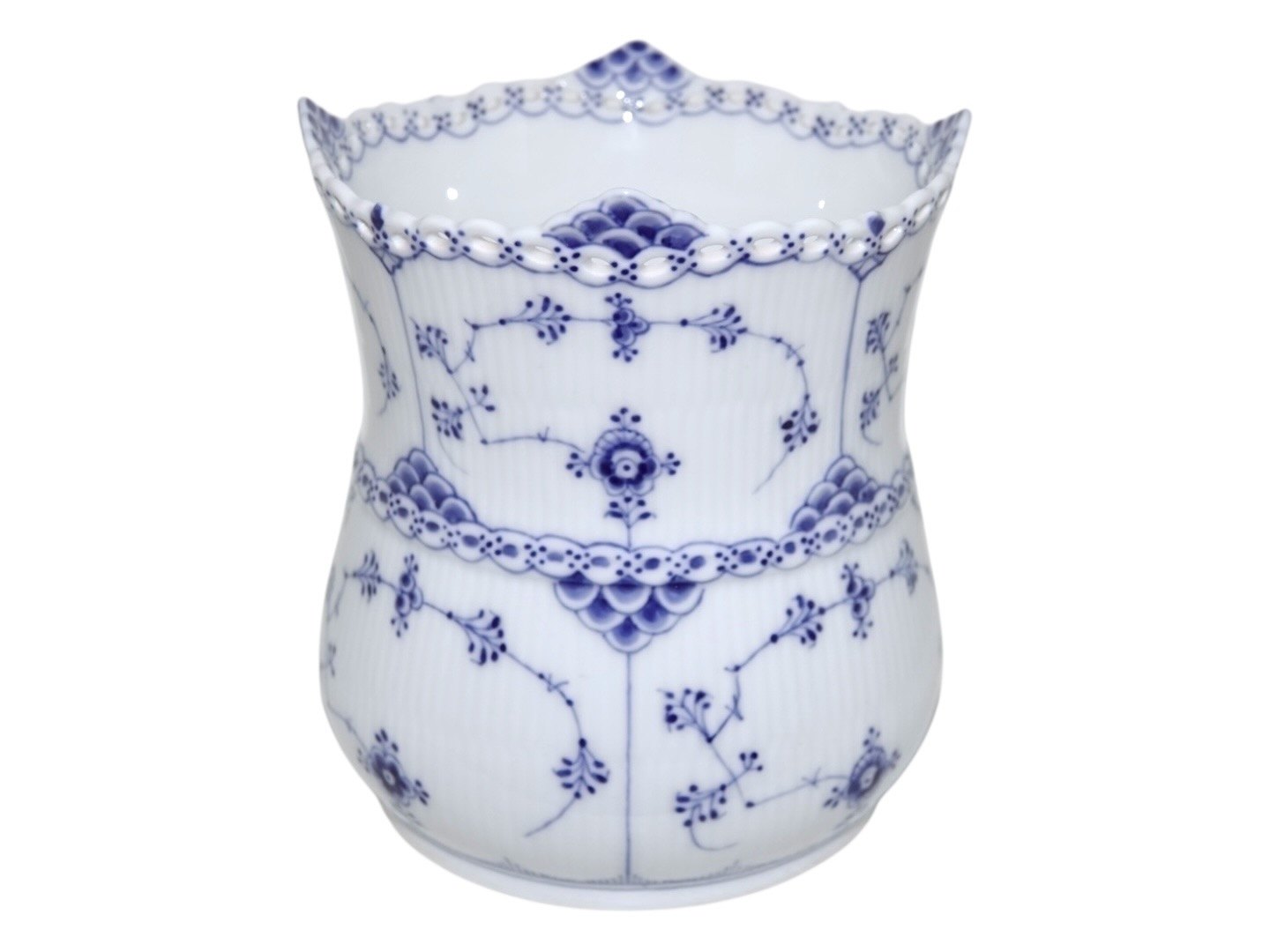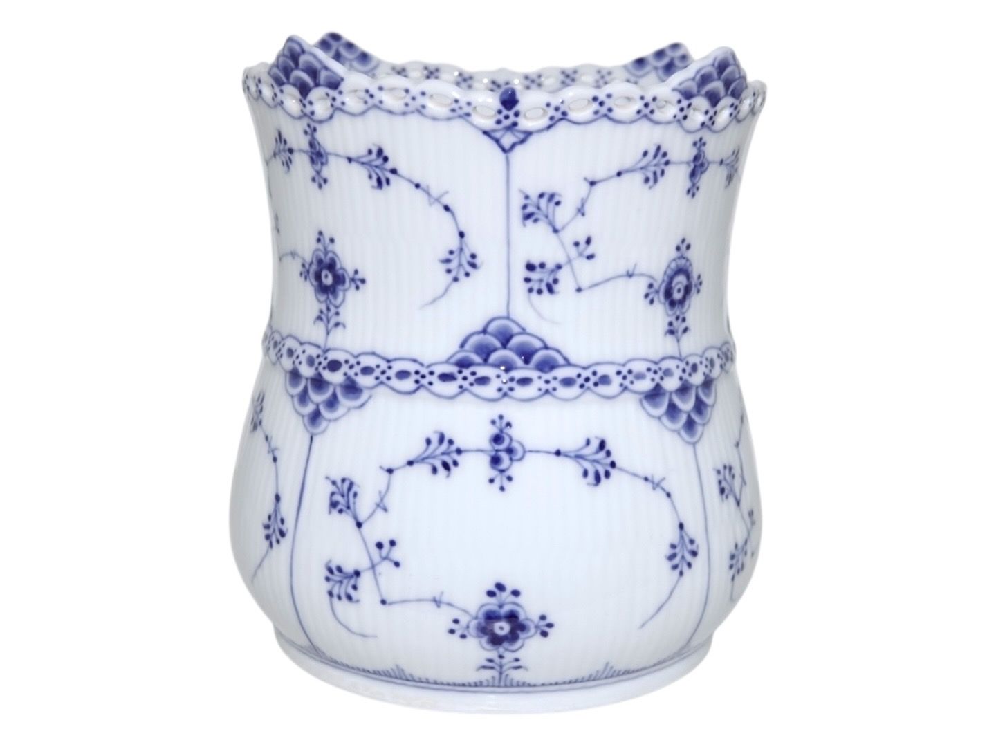 Royal Copenhagen Musselmalet Helblonde, sellerikrukke. Stemplerne viser, at denne er produceret mellem 1898 og 1923. Dekorationsnummer 1/1132. 1. sortering. Højde 16,7 cm., diameter 14,5 cm. Perfekt stand uden fejl.