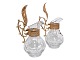 Et par små glaskander med bronze låg og dekoreret med henholdsvis et rødt og hvidt emalje kors.