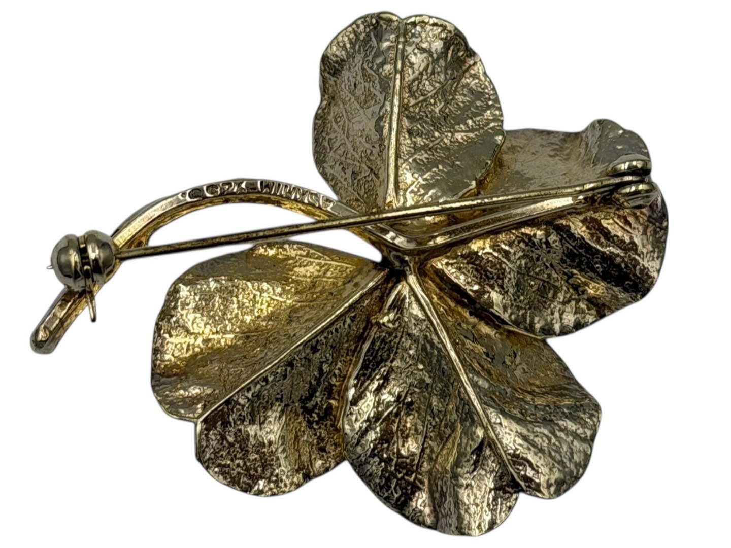 Flora Danica broche i kraftig kvalitet og udført i forgyldt sterlingsølv Designet af Leo Askhim. Stemplet "ASKHIM 925S DENMARK". Måler 4,5 x 4,0 cm. Fin stand.