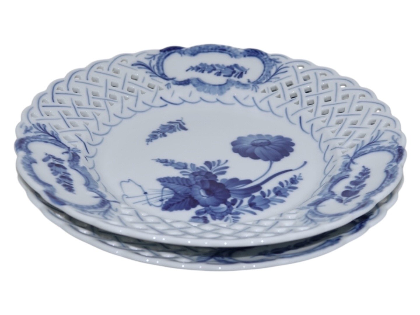 Royal Copenhagen Blue Flower Curved, large double full lace plate. Decoration number 638. Factory first. Diameter 23.8 cm. Perfect condition with no chips, cracks or repairs.