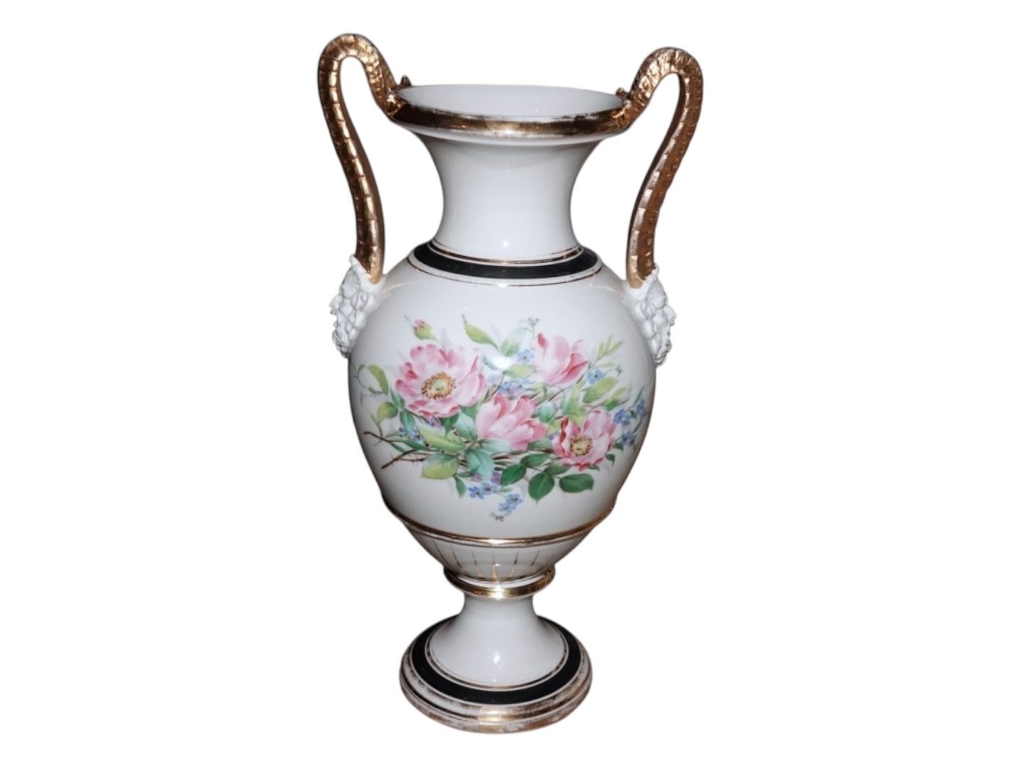 Høj antik vase med lyserøde Vilde Roser fra 1853-1895