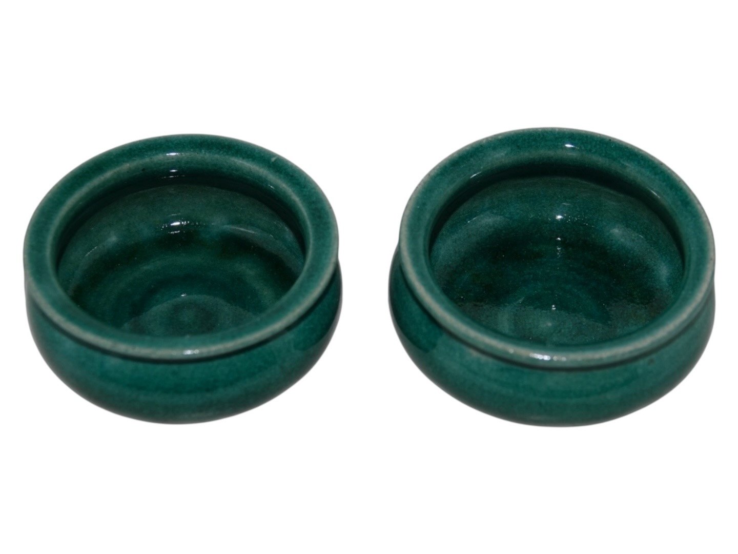 Kähler keramik, grønt saltkar. Signeret "HAK". De er lidt varierende i størrelsen: Diameter 5,7 cm., højde 2,5 cm. Diameter 5,9 cm., højde 2,5 cm. Perfekt stand.