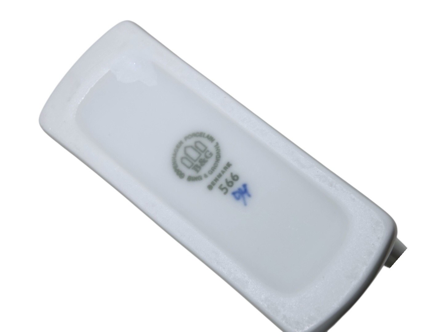 Bing & Grøndahl Empire, Servietholder. Af fabriksmærket ses det, at denne er produceret mellem 1970 og 1983. Dekorationsnummer 566. 1. sortering. Længde 9,0 cm. Perfekt stand uden fejl.