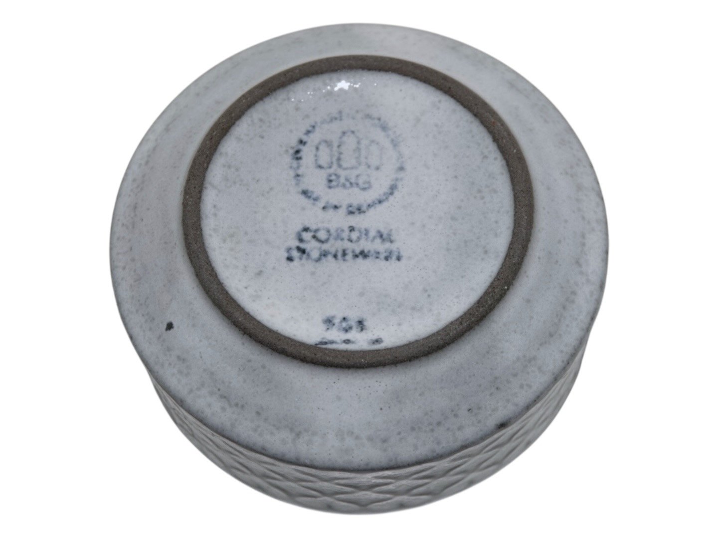 Bing & Grøndahl Cordial stentøj, sjælden lille lav skål. Designet af Jens Harald Quistgaard. 1. sortering. Diameter 8,2 cm., højde 4,1 cm. Perfekt stand.