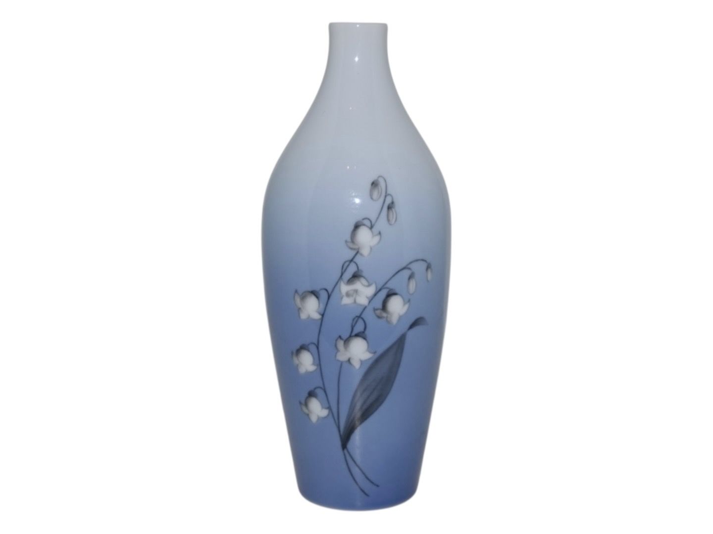 Bing & Grøndahl vase med liljekonvaller. Af fabriksmærket ses det, at denne er produceret mellem 1952 og 1958. Dekorationsnummer 57/9. 1. sortering. Højde 16,5 cm. Perfekt stand uden fejl.