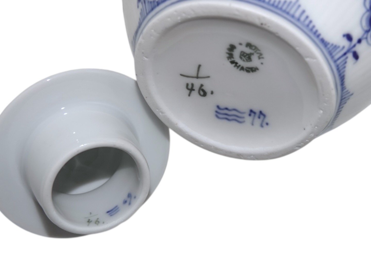 Royal Copenhagen Musselmalet Riflet, lille kaffekande.