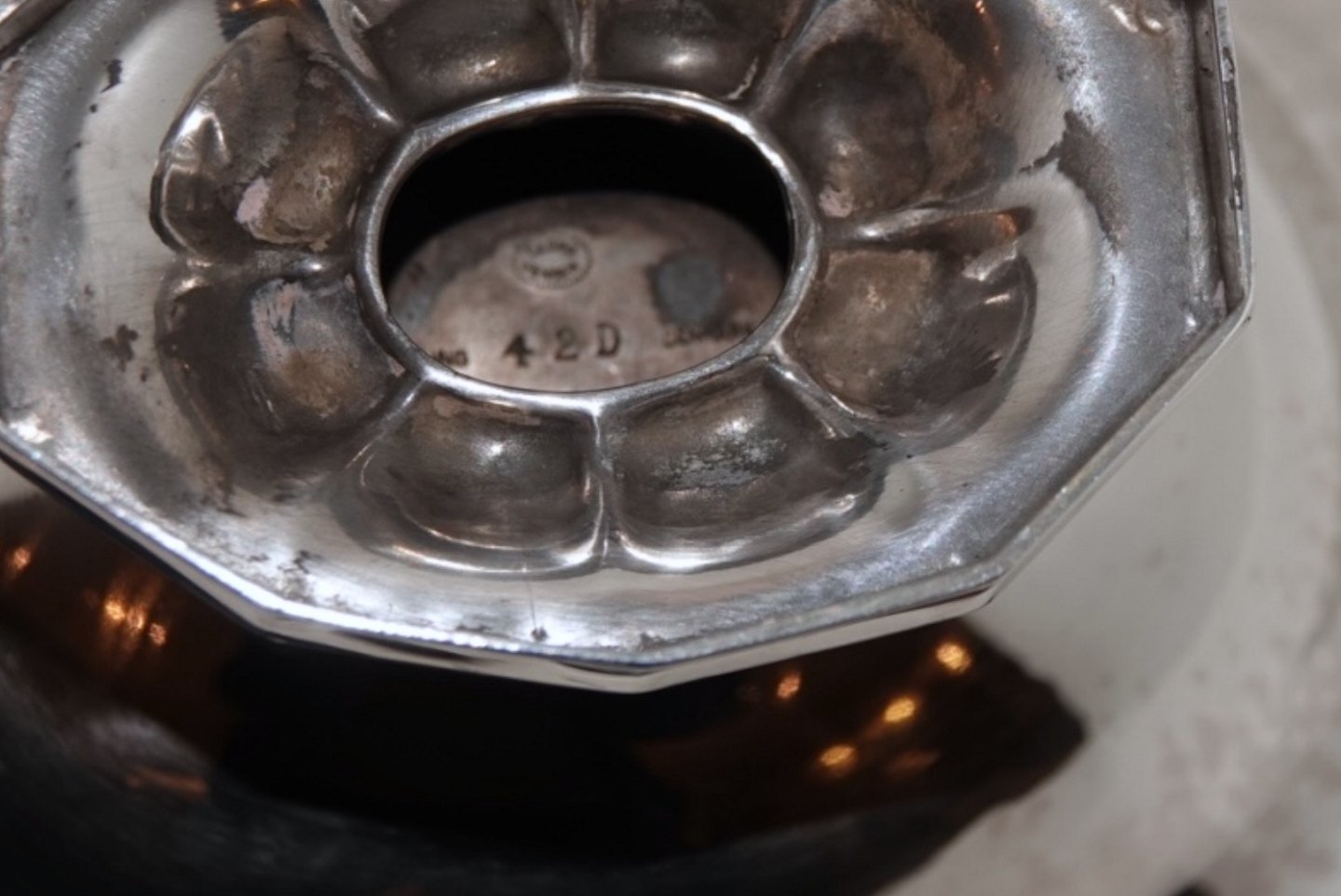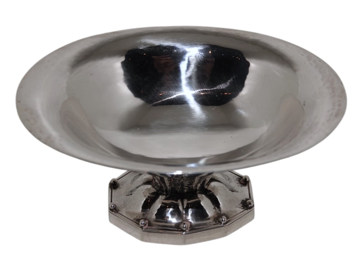 Georg Jensen sterlingsølv, lille skål på fod. Denne er produceret efter 1945. Designnummer 42D. Længde 13,0 cm., højde 6,3 cm. Meget velholdt stand uden indgraveringer.