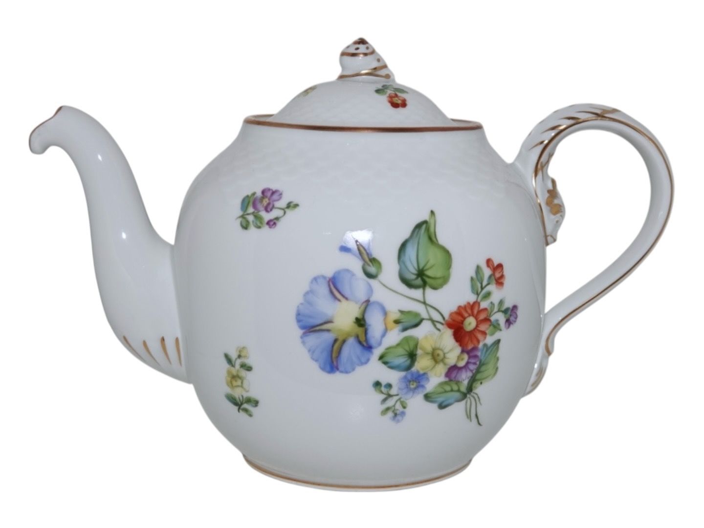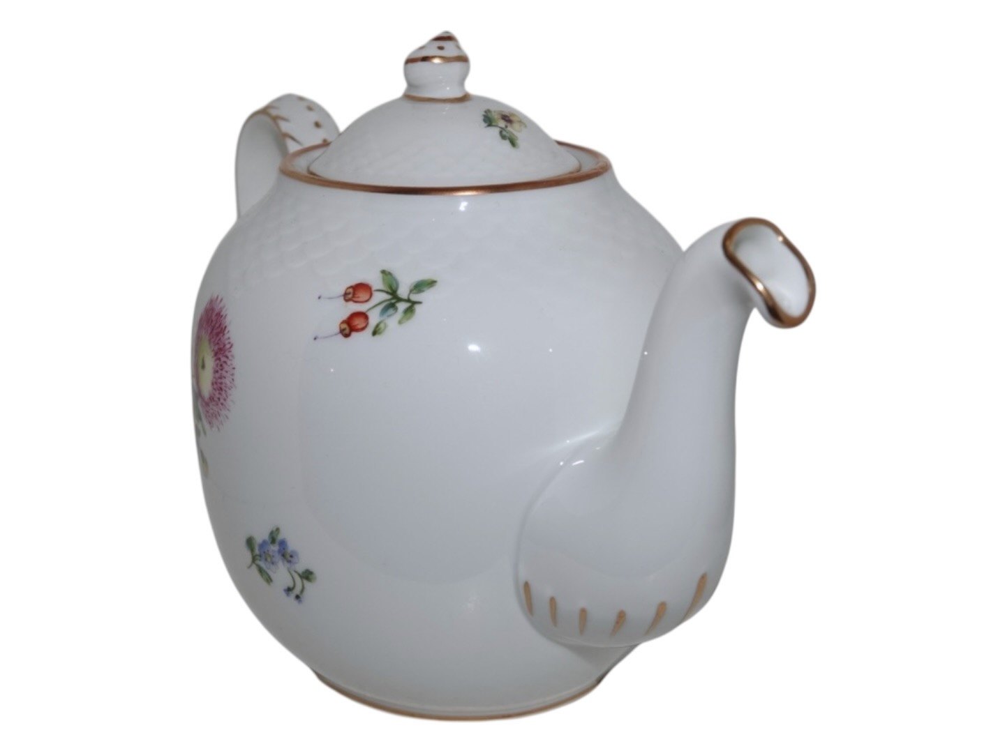 Bing & Grøndahl Saksisk Blomst på hvid porcelæn, tekande. Dekorationsnummer 238. Denne er produceret mellem 1952 og 1958. 1. sortering. Længde 25 cm. Perfekt stand uden fejl.