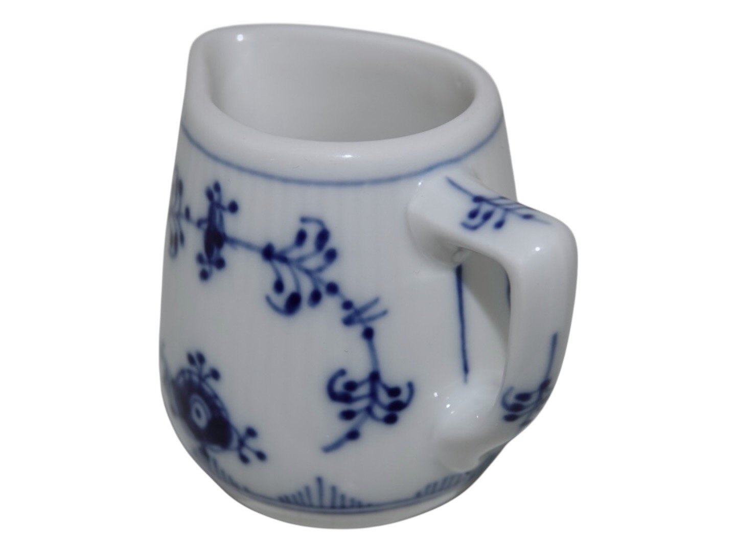 Royal Copenhagen Musselmalet Riflet i tykt jernporcelæn, miniature flødekande.