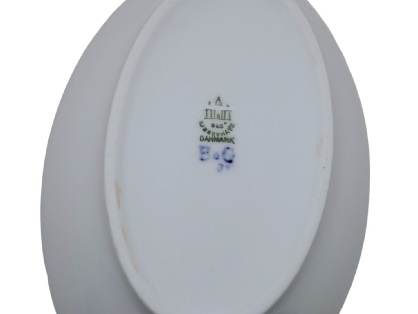 Bing & Grøndahl Empire, lille oval asiet. Af fabriksmærket kan det udledes, at denne er produceret mellem 1915 og 1948. 2. sortering. Længde 17,8 cm. Perfekt stand uden fejl.