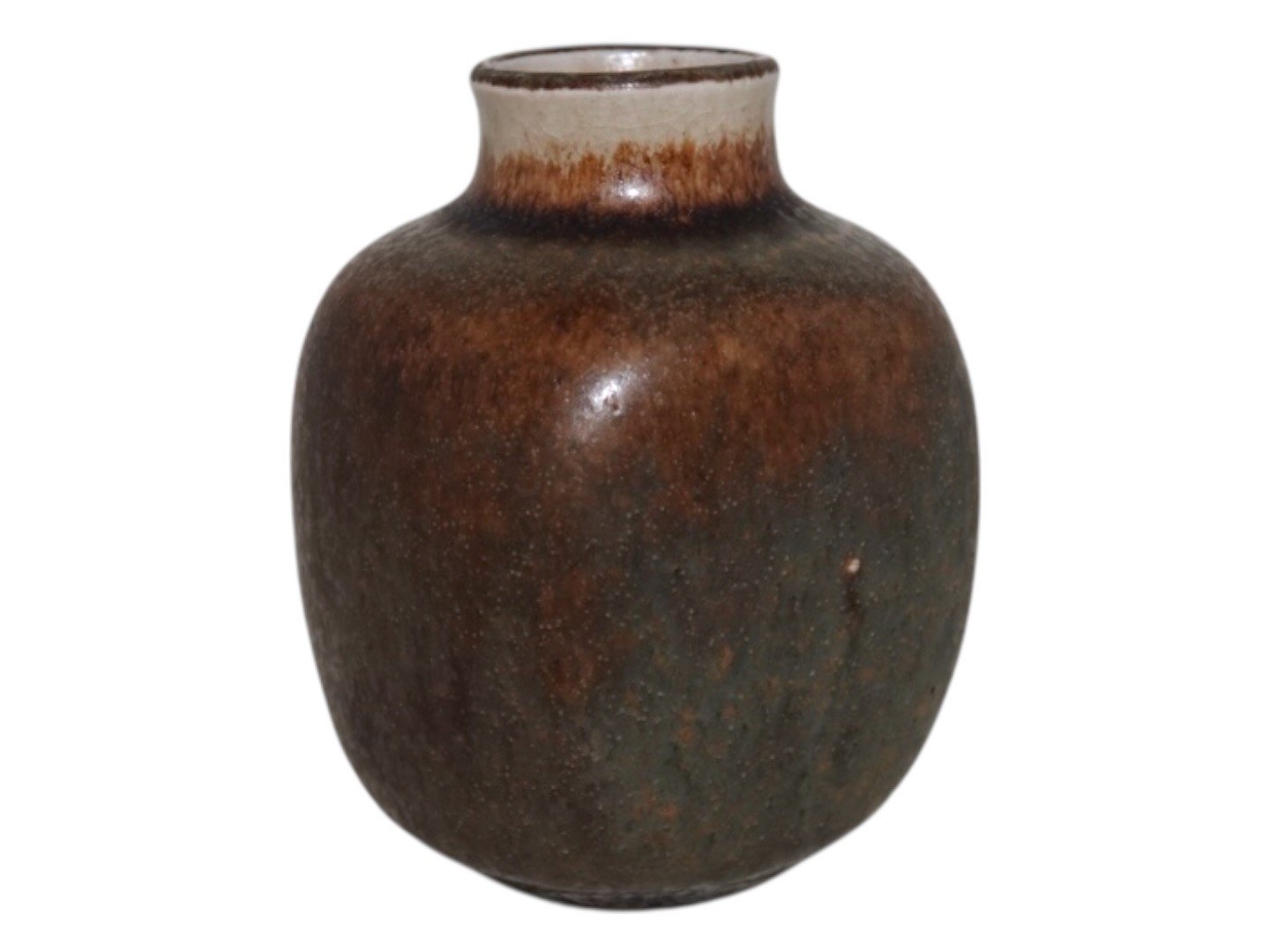 Royal Copenhagen keramik, miniature vase af Nils Thorsson. Dekorationsnummer 21400. 1. sortering. Højde 8,2 cm. Der er et par medfødte små lyse pletter i glasuren, se fotos. Ellers perfekt stand uden fejl.