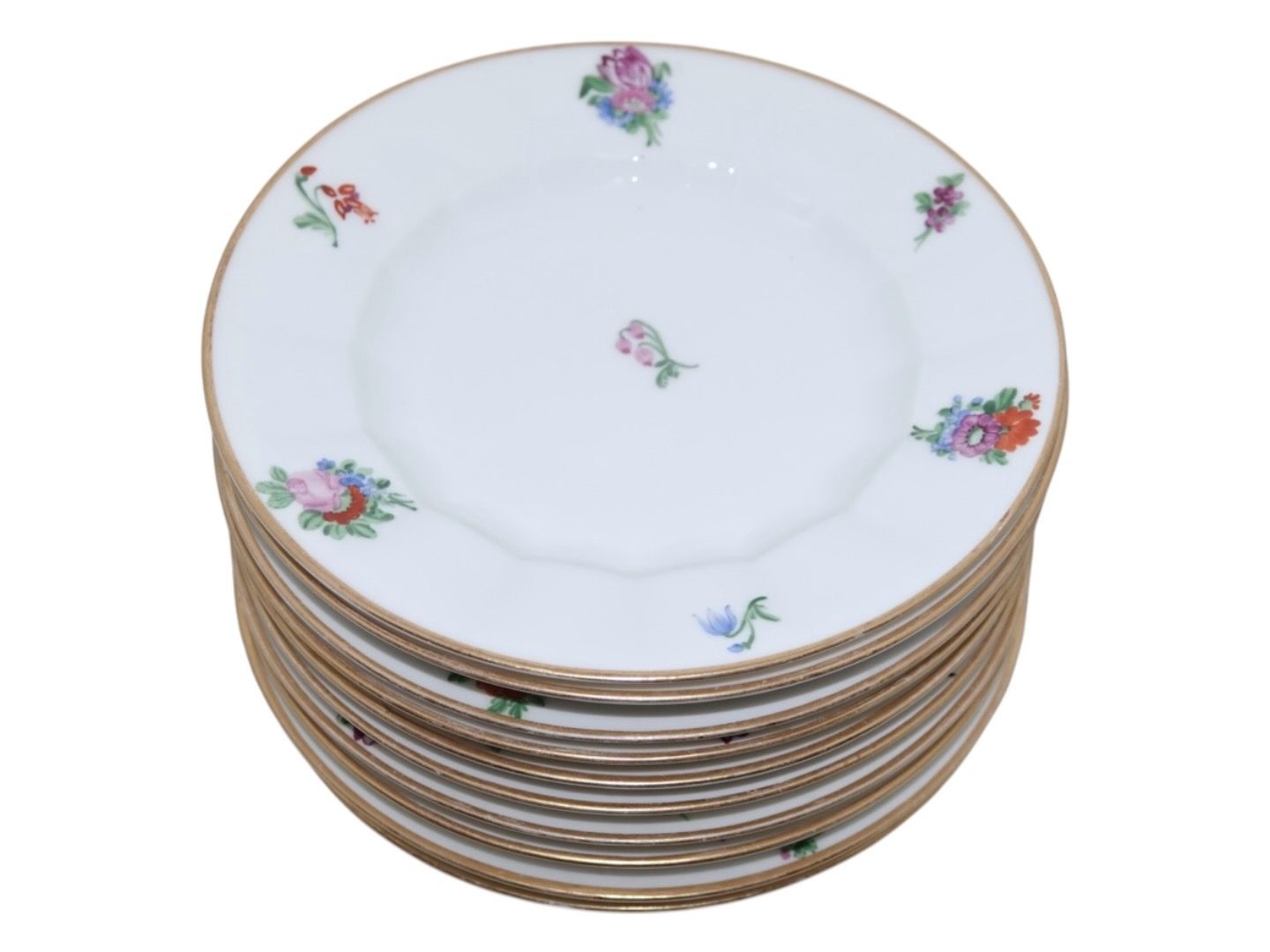 Royal Copenhagen Strøblomst (Let Henriette), stor kagetallerken. Dekorationsnummer 482/8518. 2. sortering. Diameter 17,5 cm. Der er en lille smule slid på nogle af guldkanterne ellers perfekt stand uden fejl.