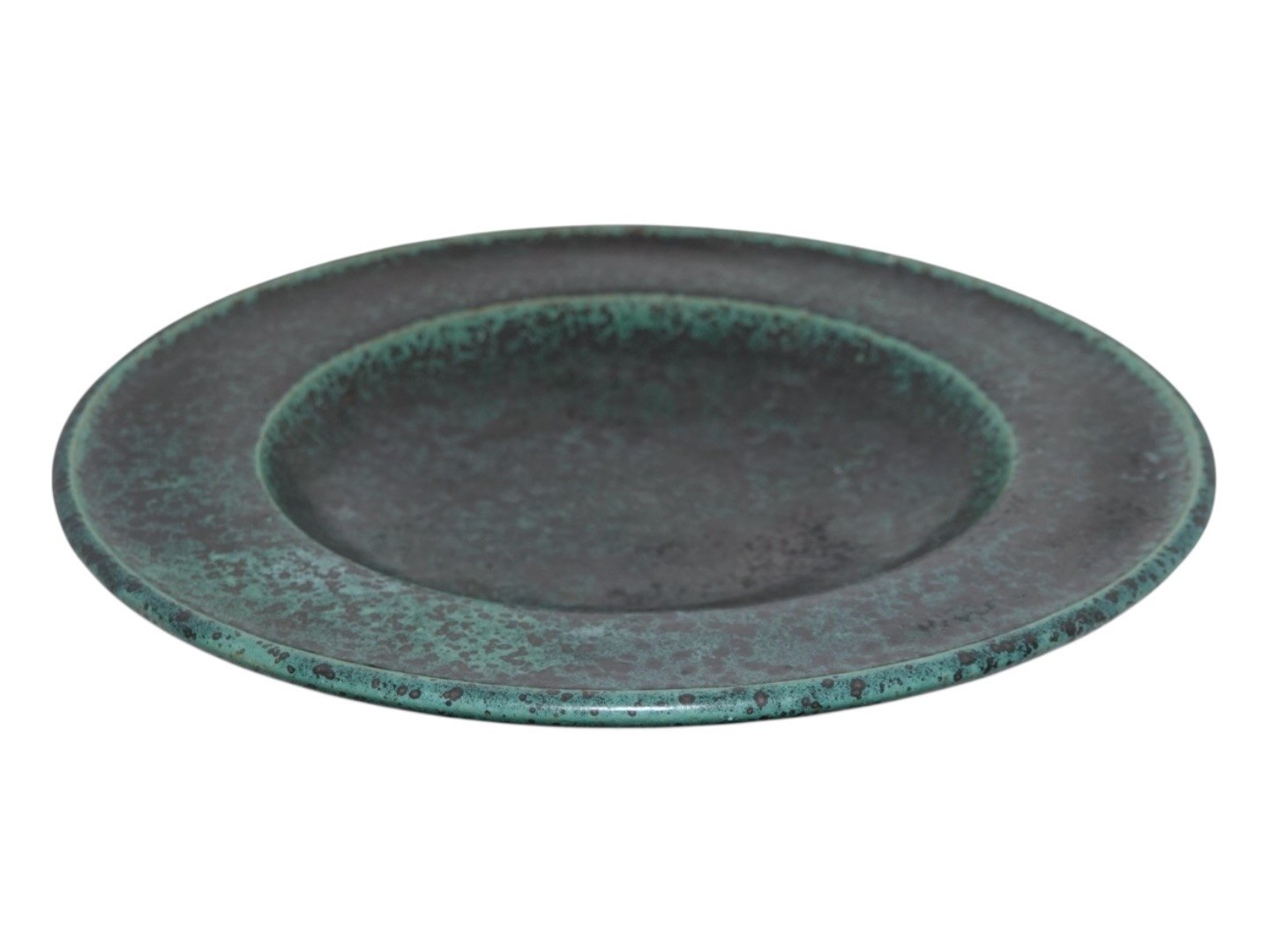 Arne Bang keramik, stort rundt fad med en mørkegrøn glasur.