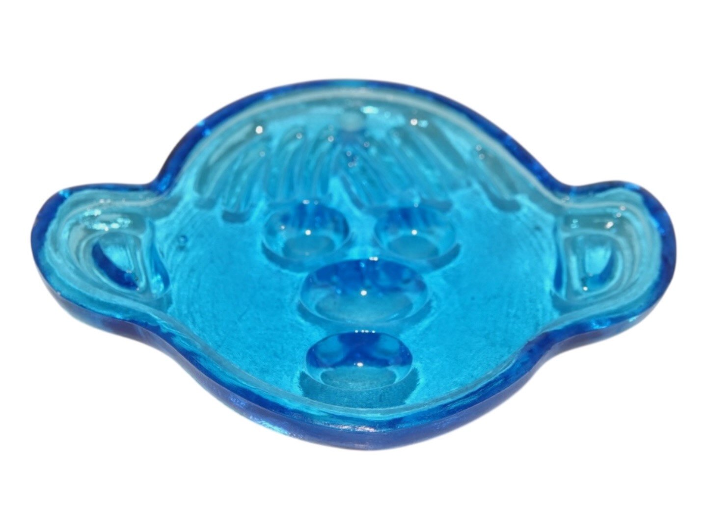 Glasværk fra Sverige, lyseblå solfanger i form af drengeansigt fra 1970'erne eller 1980'erne. Måler 10,0 x 7,5 cm. Der er et lille nøk på en kant på bagsiden eller fin stand. Internt varenummer: SOLFANGER24