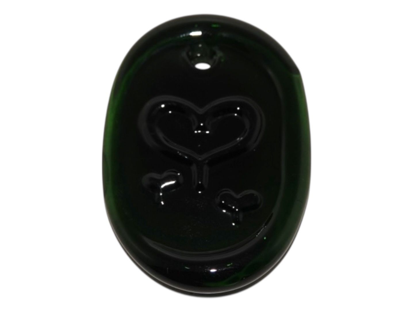 Holmegaard, lille møkregrøn solfanger med hjerte fra 1970'erne. Måler 5,7 x 3,4 cm. Perfekt stand. Internt varenummer: SOLFANGER15