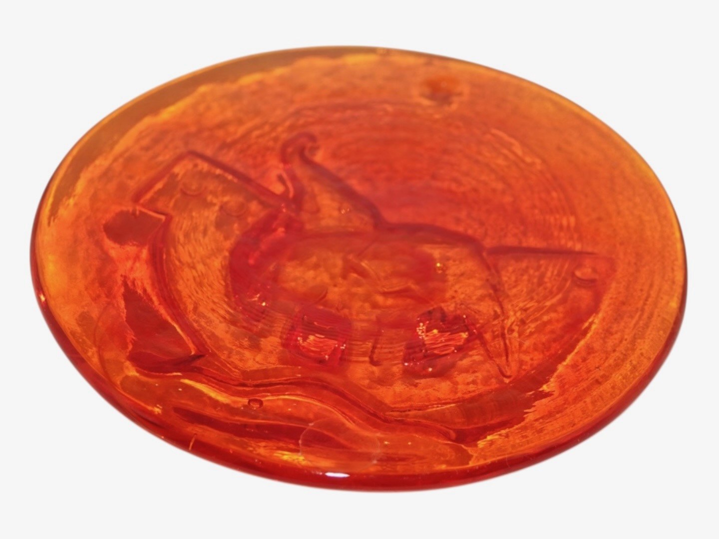 Holmegaard, orangerød solfanger fra 1970'erne. Diameter 11,5 cm. Perfekt stand. Internt varenummer: SOLFANGER11