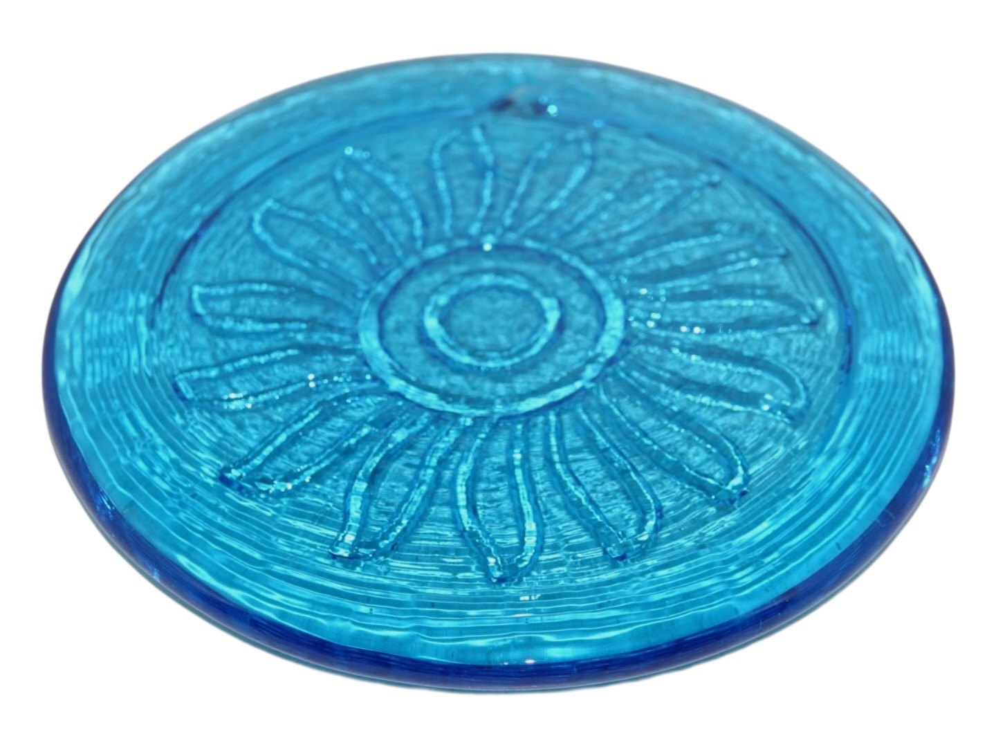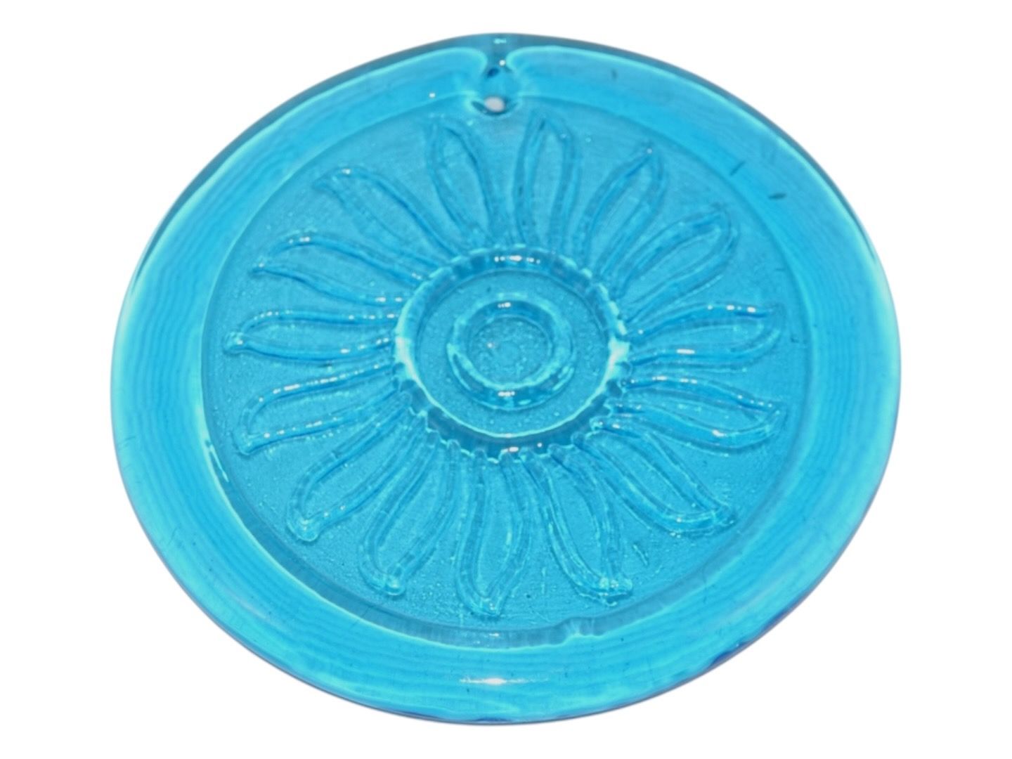 Holmegaard blå solfanger med solsikke fra 1970'erne.