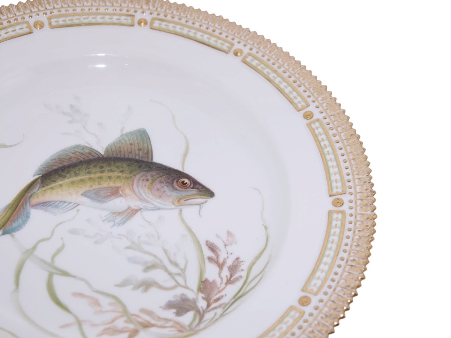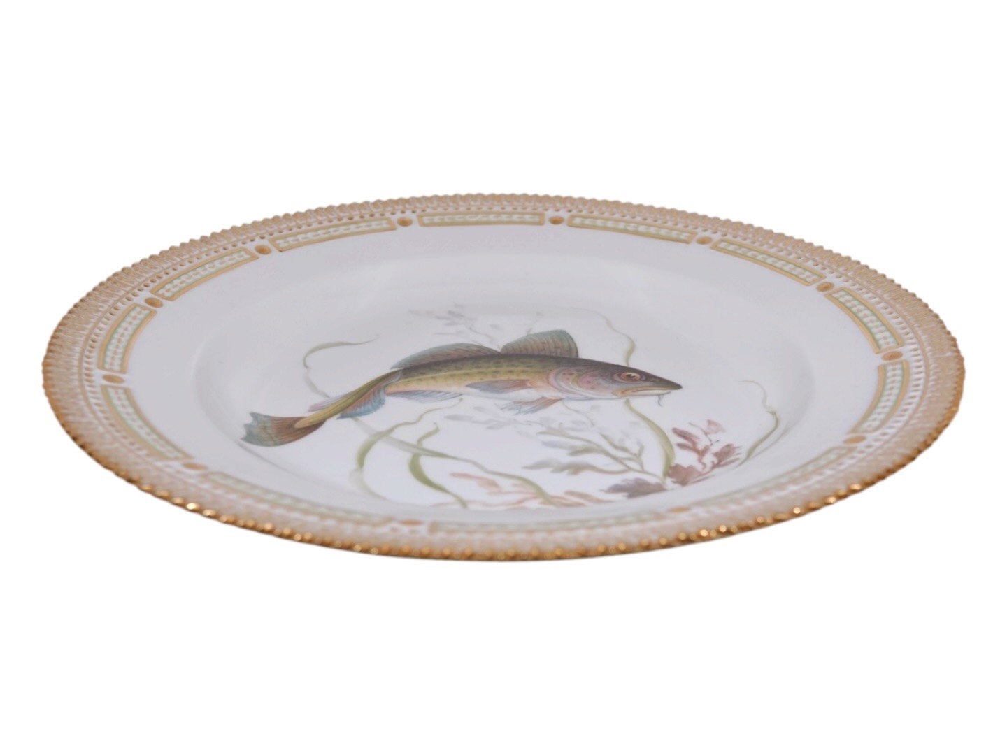 Royal Copenhagen Flora Danica, middagstallerken dekoreret med fisk.