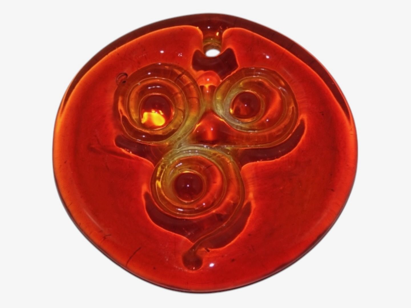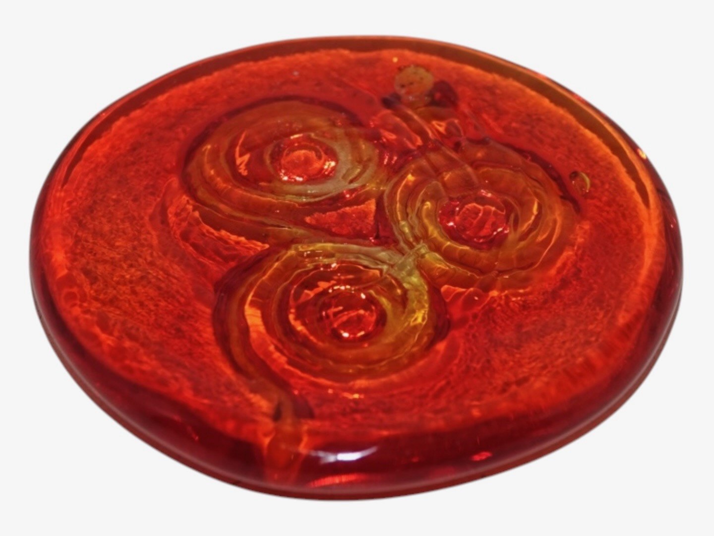 Holmegaard, miniature rød solfanger fra 1970'erne. Diameter 5,5 cm. Perfekt stand. Internt varenummer: SOLFANGER53