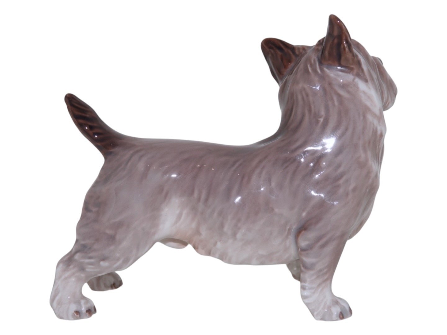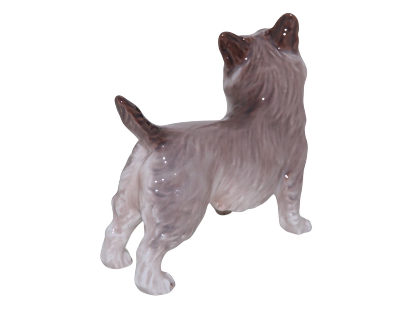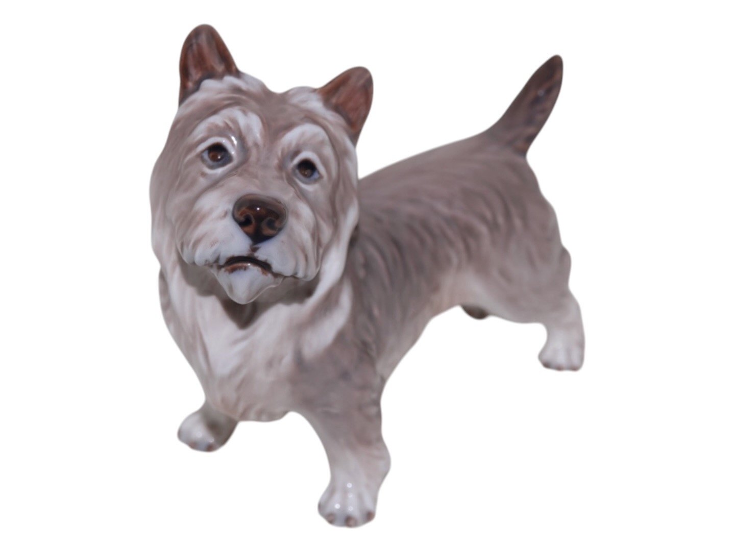 Dahl Jensen hunde figur, Cairn Terrier. Af fabriksmærket ses det, at denne er produceret mellem 1928 og 1985. Dekorationsnummer 1149. 1. sortering. Længde 13,5 cm. Perfekt stand uden fejl.