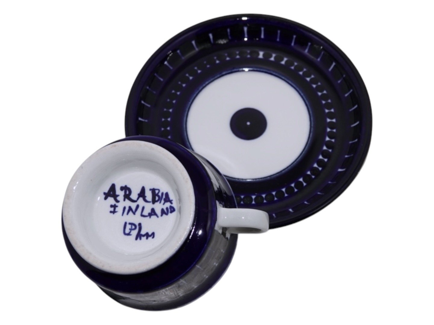 Arabia Finland Valencia, lille kaffekop med tilhørende underkop. Designet af Ulla Procope i 1960. Diameter på koppen er 7,5 cm. og højden er 4,8 cm. Perfekt stand.