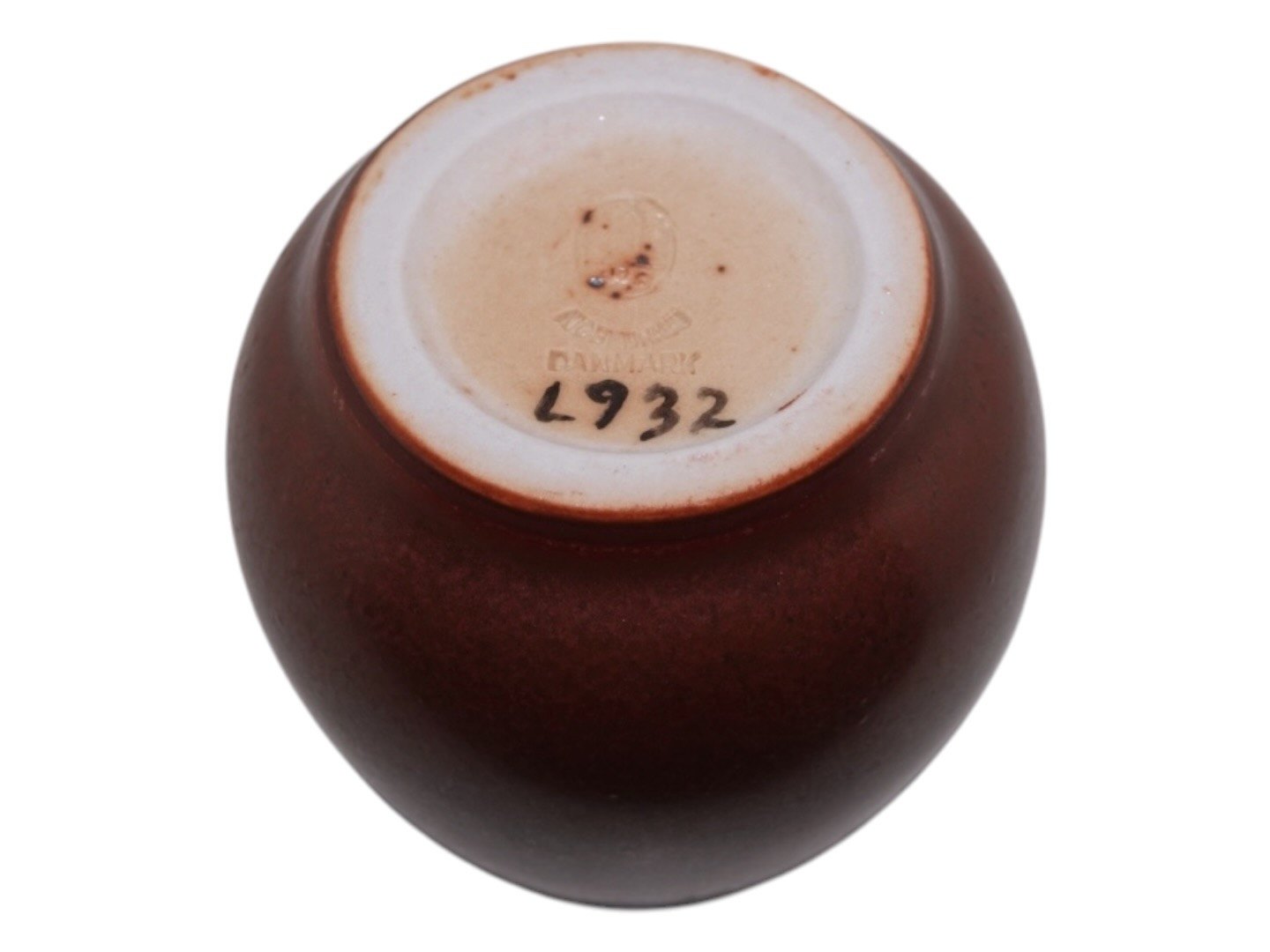 Lille Bing & Grøndahl keramikvase i enkel moderne stil med en brun glasur. Den er mærket med nummer L932. Denne er produceret mellem 1915 og 1948. 1. sortering. Højde 8,6 cm. Perfekt stand uden fejl.