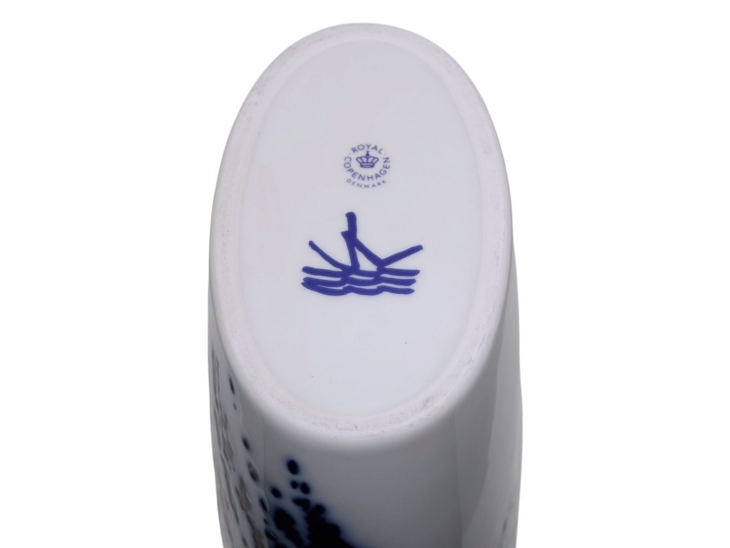 Royal Copenhagen kunstporcelæn, stor blå og hvid vase af Ivan Weiss. 1. sortering. Højde 22,0 cm., bredde 25,5 cm. Perfekt stand uden fejl.