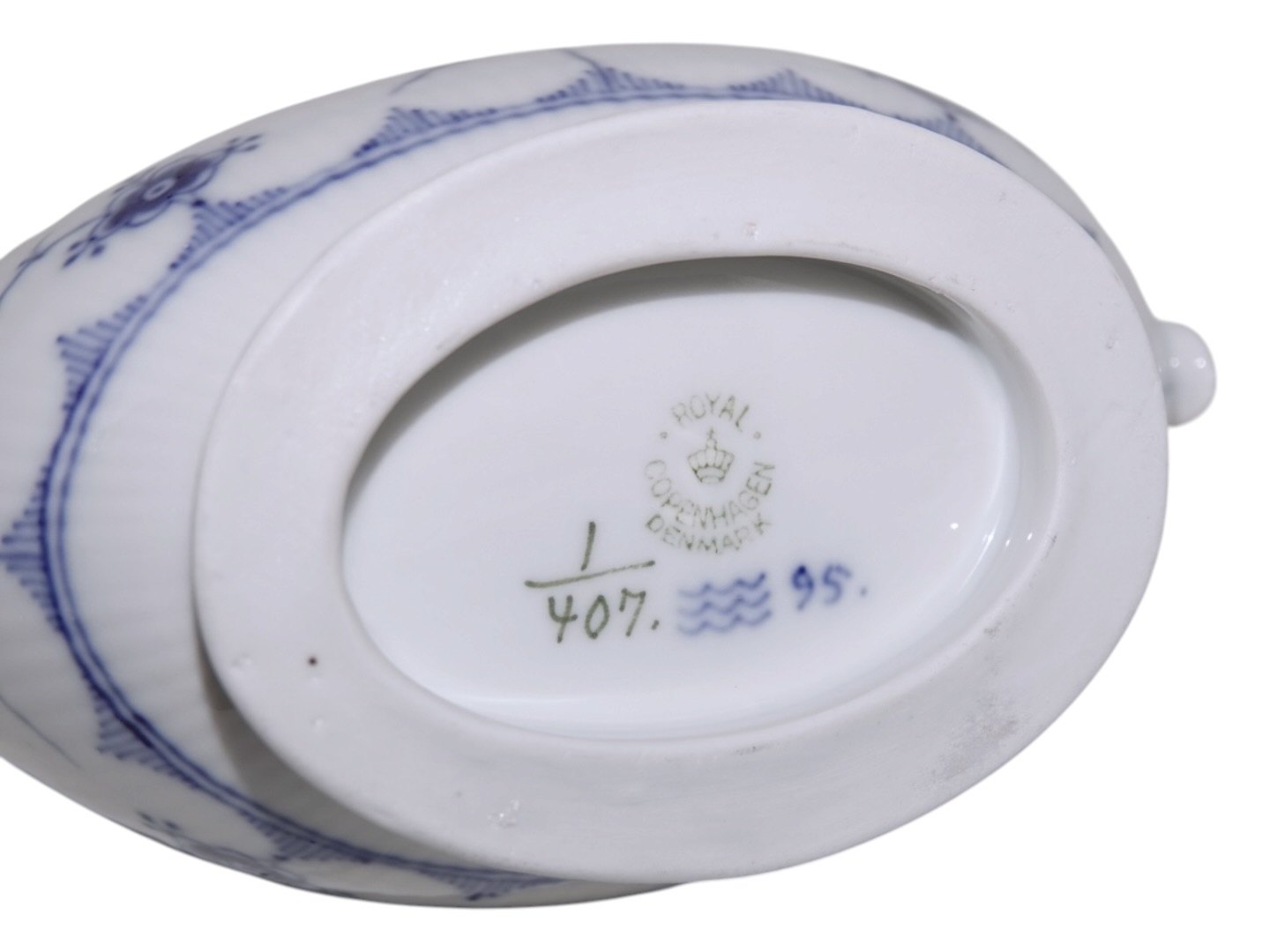 Royal Copenhagen Musselmalet Riflet, sjældent set sovsekande.