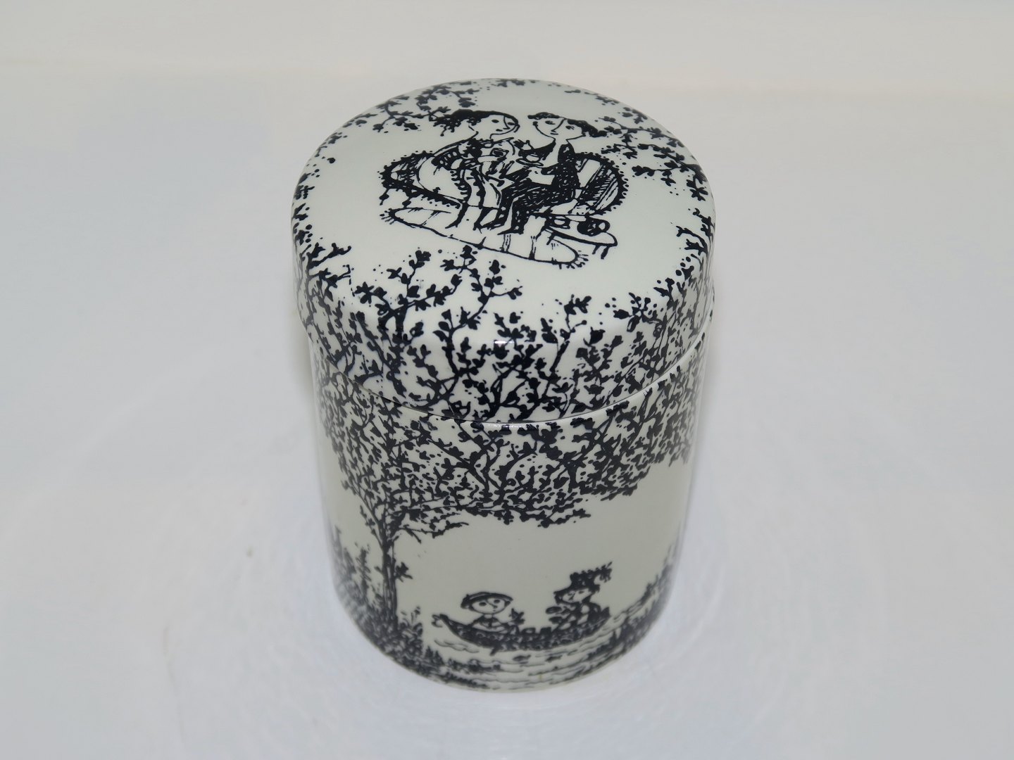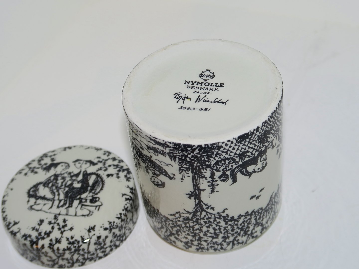 Nymølle keramik, Bjørn Wiinblad, krukke med låg. Dekorationsnummer 3043/681. Højde 10,0 cm. Perfekt stand.