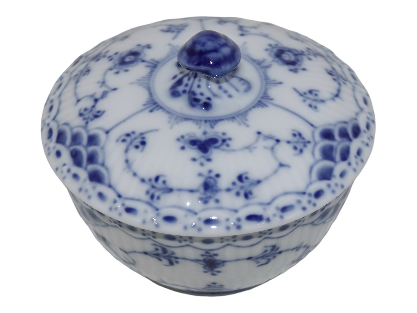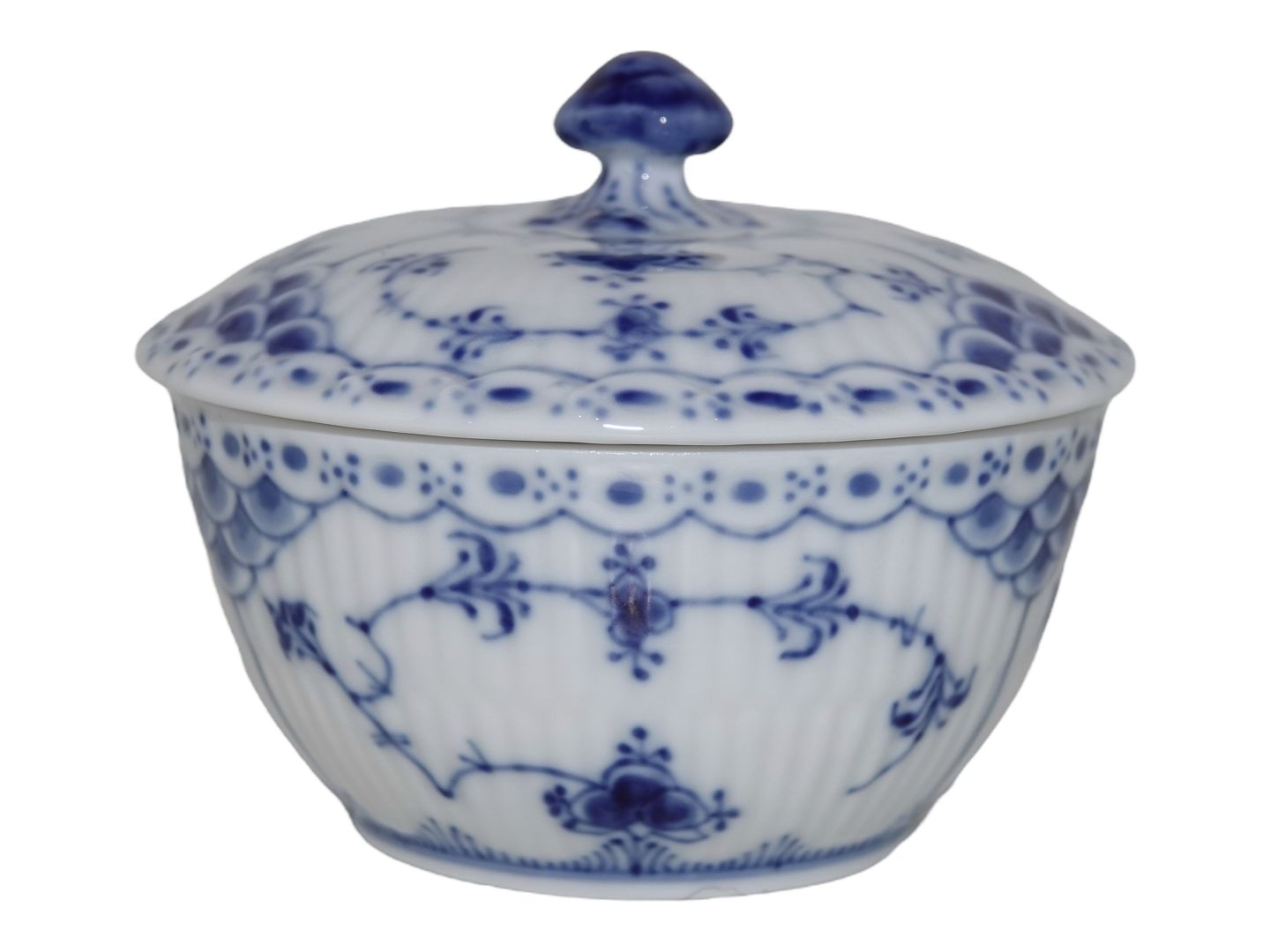 Royal Copenhagen Blue Fluted Half Lace, small sugar bowl. Decoration number 1/657. Factory second. Diameter 8.7 cm. Perfect condition.