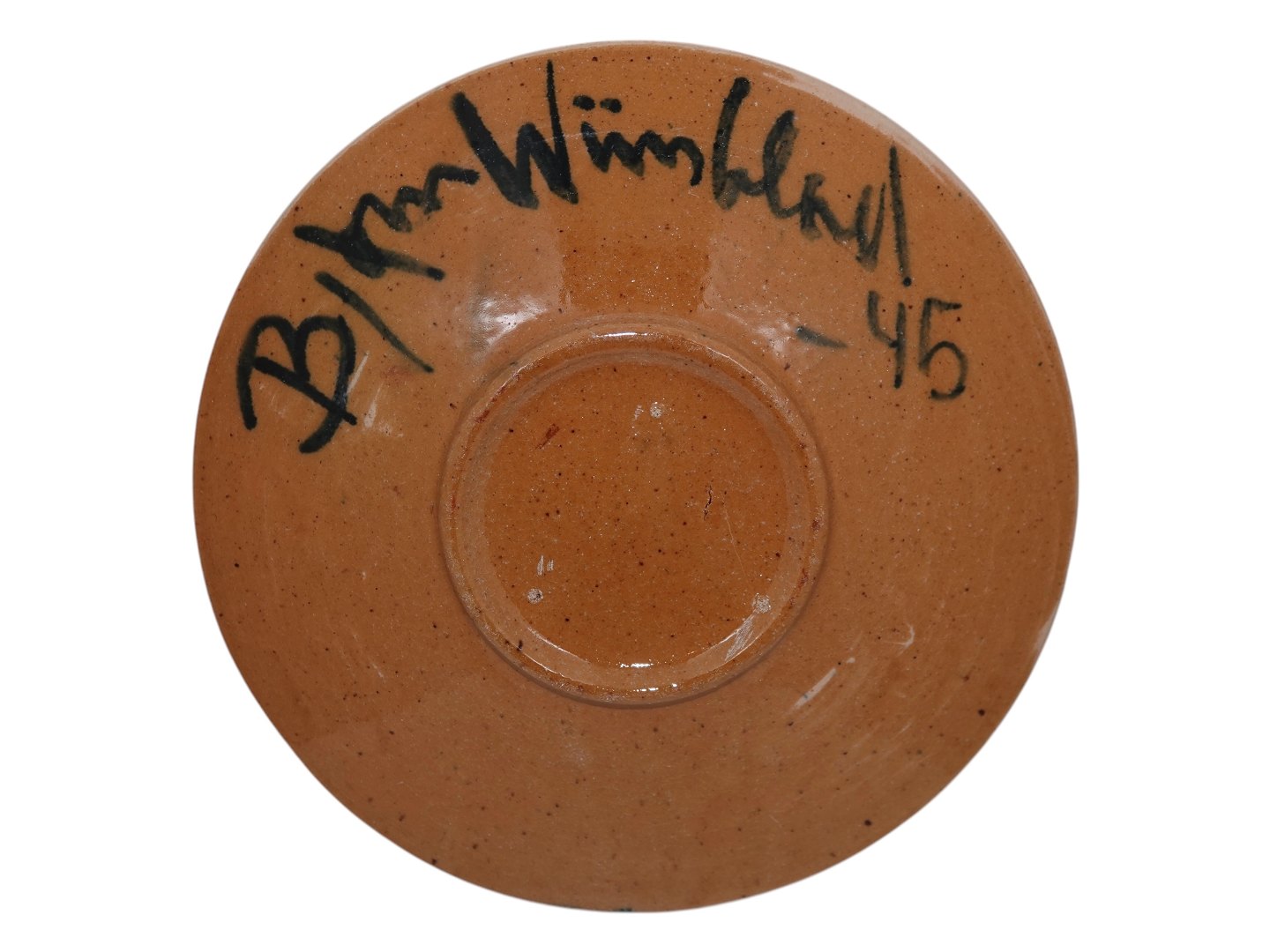 The bowl is fully signed and with the year 1945, so it was made when Bjørn Wiinblad was just 26 years old. The bowl was given by Mr. Wiinblad himself as a gift to some friends.